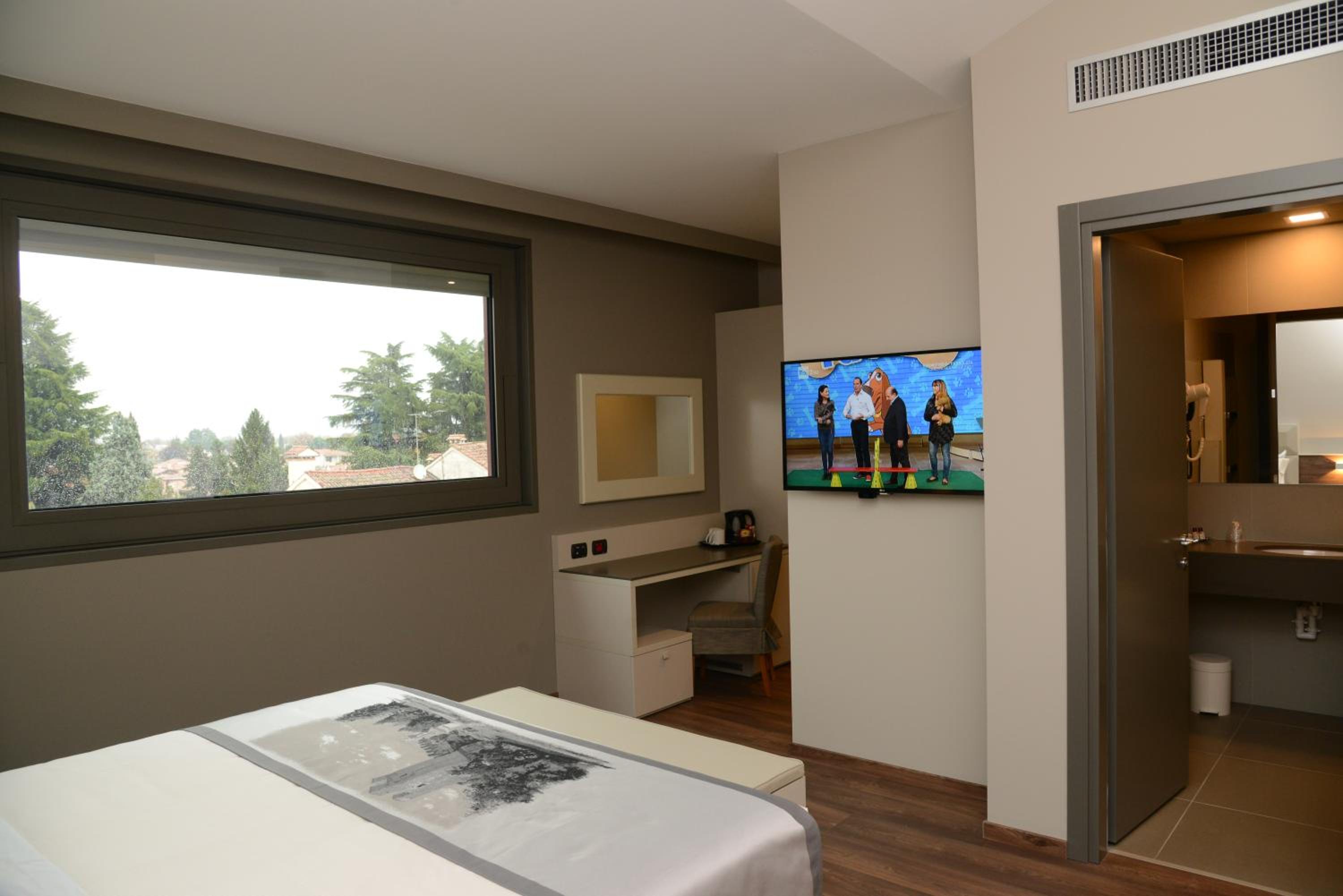 Colazione Internazionale abbondante e ben servita, posizione ottima, vicino a stazione e centro storico, la vista dalla mia camera era incantevole, dato il periodo del soggiorno, poter osservare dalla stanza le luminarie della piazza Giorgione e delle mura veramente incantevole. Per ultimo godere dello spettacolo pirotecnico del fine anno al calduccio dalla camera, è stato incantevole!!!