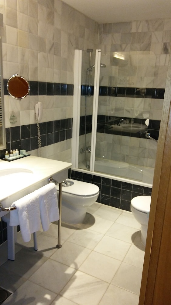 Für einen Parador ausser der Halle relativ unspektakulär. Schwimmbad, wie eine Metzgerhalle. Die Sauna, so klein wie ein Schrank. Klima laut und bringt nichts. Wenn man das Fenster öffnet, hat man die ganze Nacht den Lärm der Hautklima.