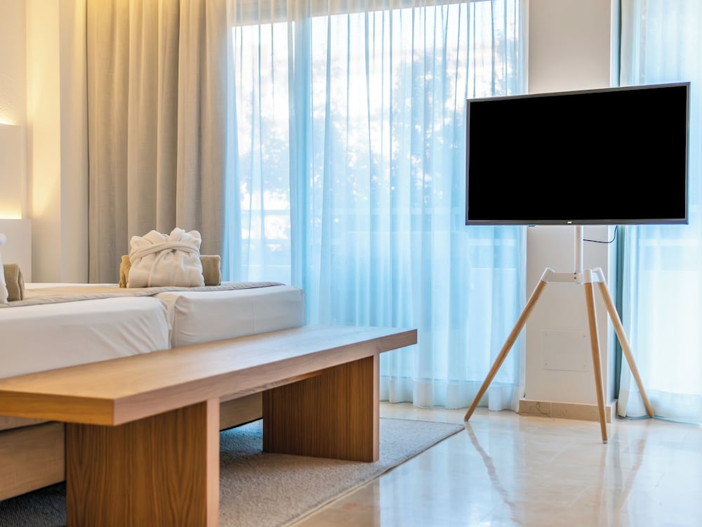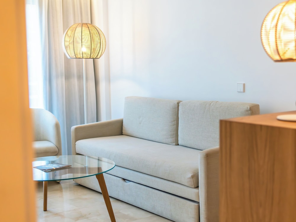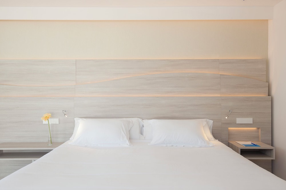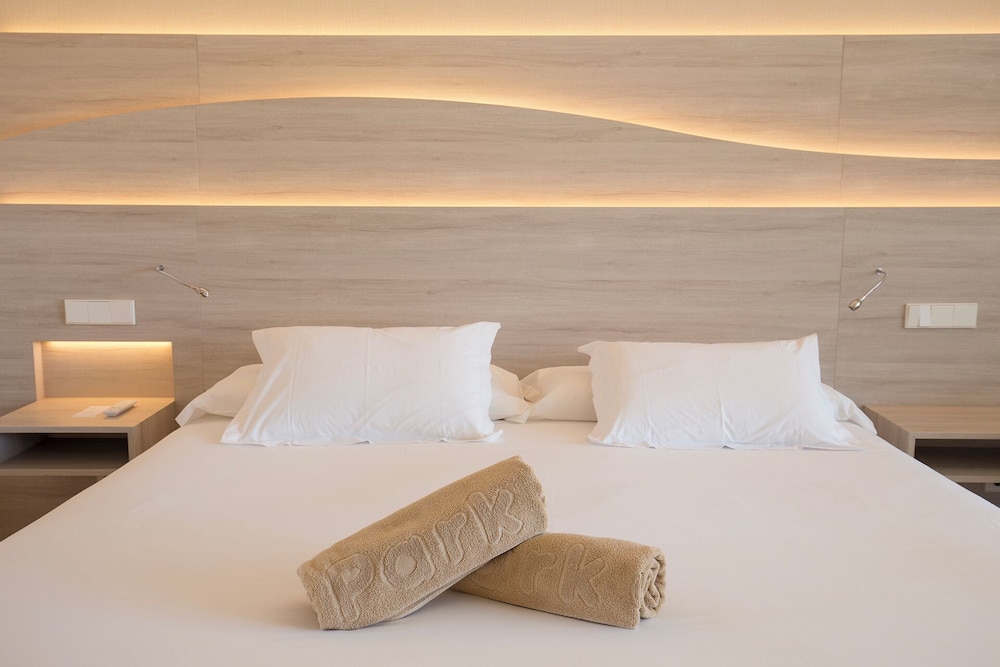 Nice hotel next to the beach. They really make an effort with the buffet every day so half board is recommended, especially because the selection of restaurants in town is not that great. Two rooftop pools are great for quietly reading a book away from it all. We never had an issue to find a quiet spot with an umbrella. Room service is very efficient (thank you Ms. Angeles) and our rooms were clean every day after we had gone to breakfast. Cocktails in the evening are very decently priced (about 7.50). Free on street parking near the hotel. However, it may be a bit harder to find a spot during the day in high season as many come from out of town to spend a day on the beach.
