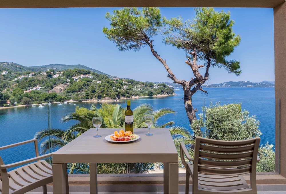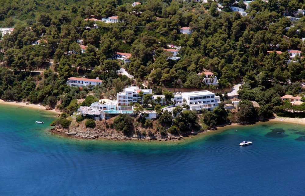 We just stayed here three night's but wished it was longer. Well placed for the beach and local restaurants, easy to get into Skiathos Town by taxi boat or bus. Hotel staff very welcoming.Just a few minutes (and a few more steps!) down to the beach where there is a great little dive shop ... Manthos can show you the other Skiathos. We stayed right at the beginning of the season (May) and the island was just waking up ... but no complaints there. Would absolutely stay here again.