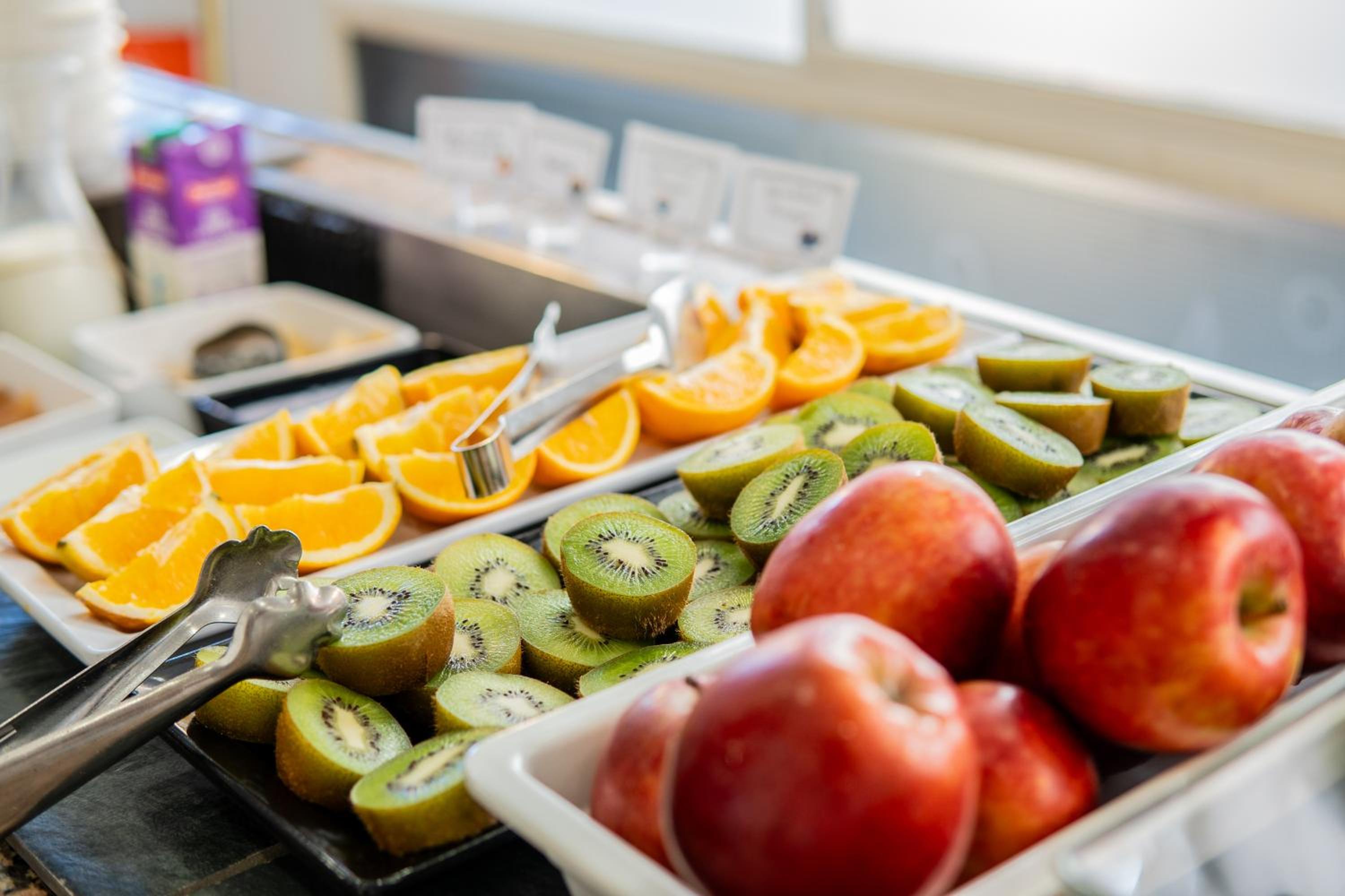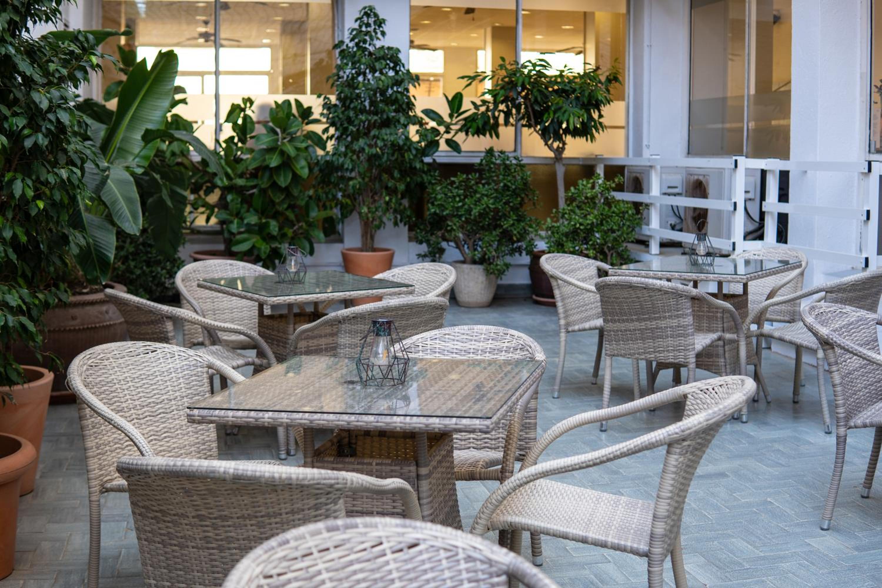 The hotel boasts a refreshing seasonal outdoor pool where guests can relax and unwind. Additionally, the buffet restaurant serves delightful Mediterranean cuisine, ensuring a satisfying dining experience for all visitors.
