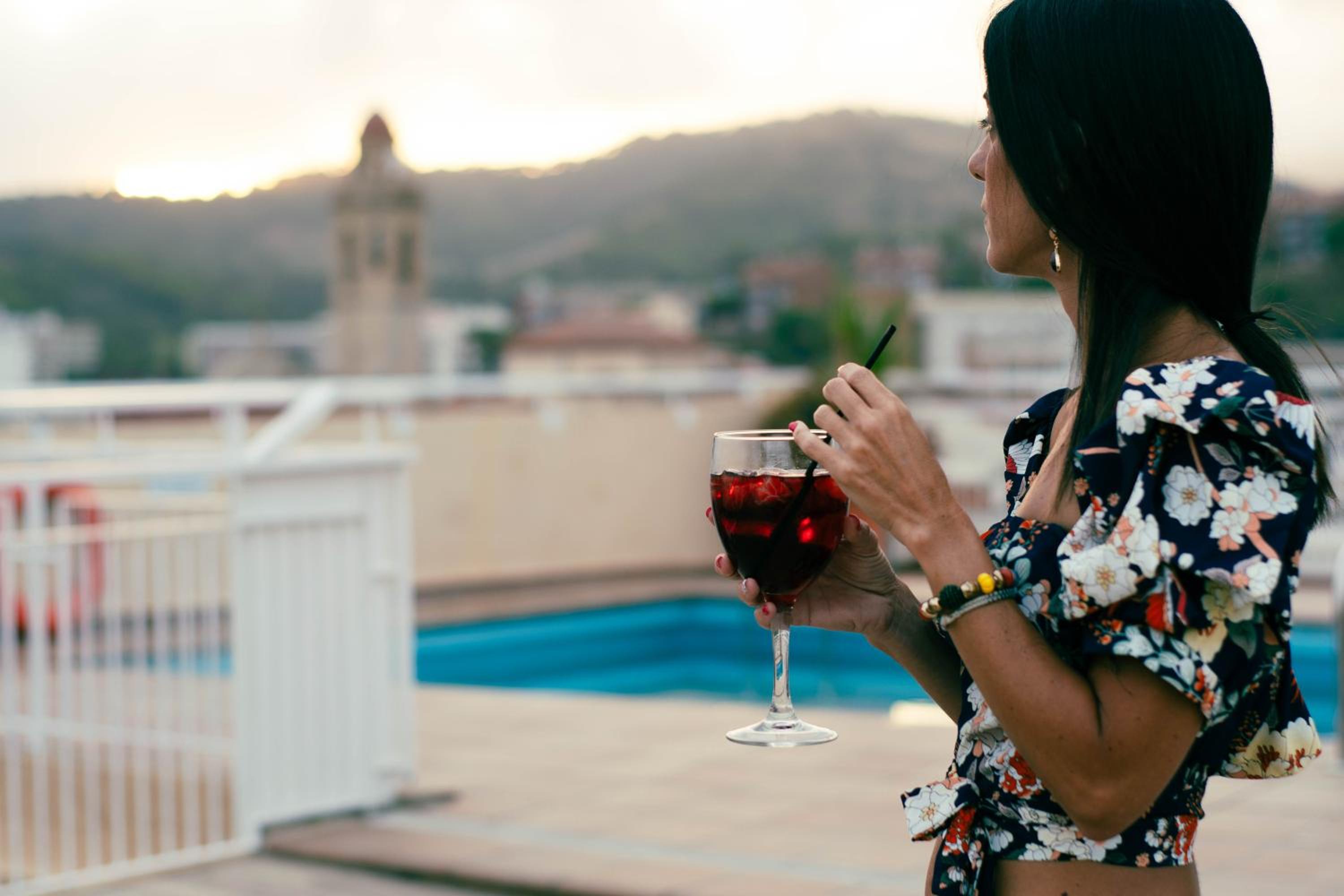 Von der Dachterrasse mit Pool hat man einen schönen Blick und kann gemütlich sitzen. Allerdings gibt es hier keine Bar. Man muss sich die Getränke selbst mit hochnehmen. Der Pool ist eher klein und nicht besonders.