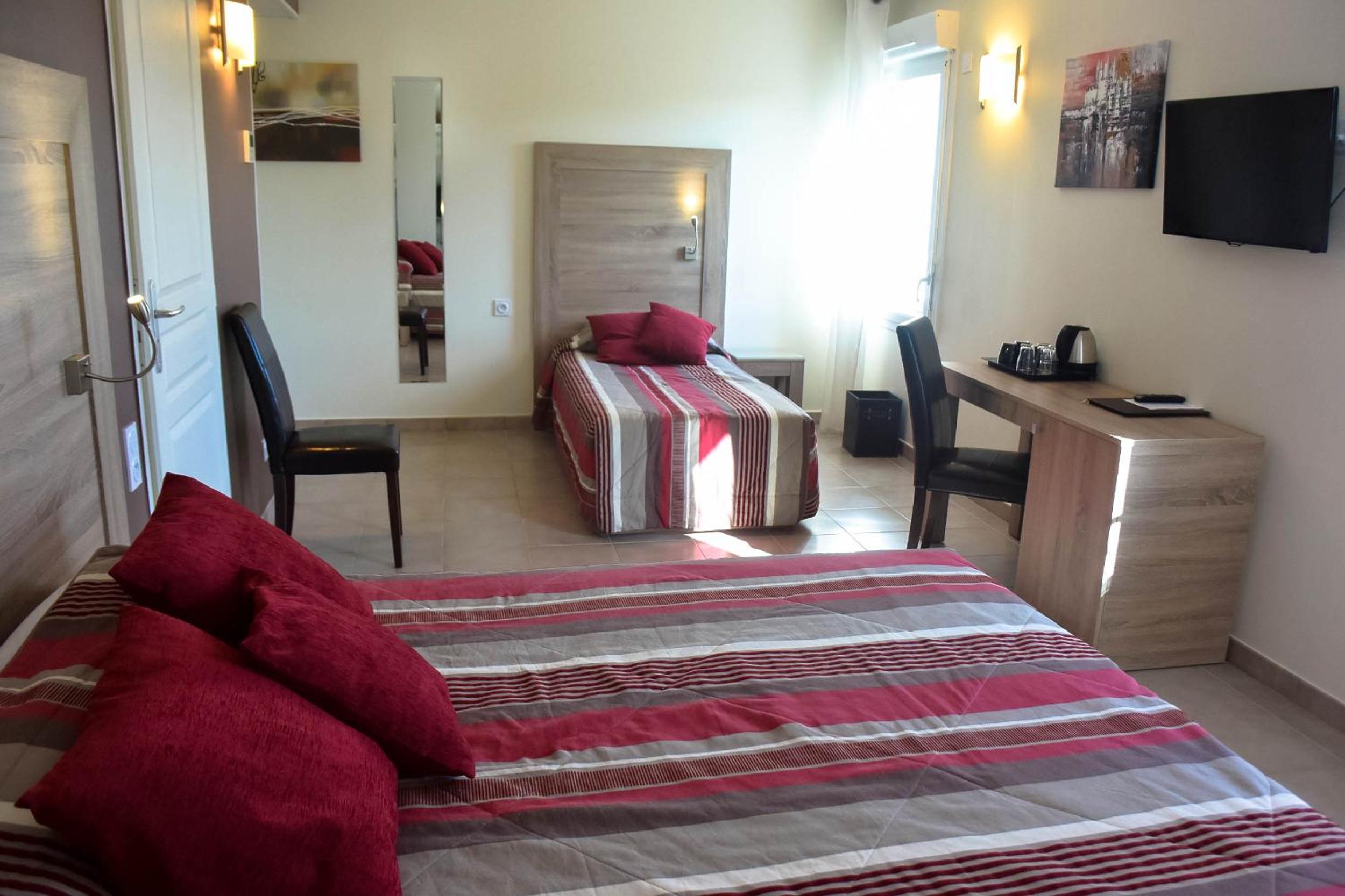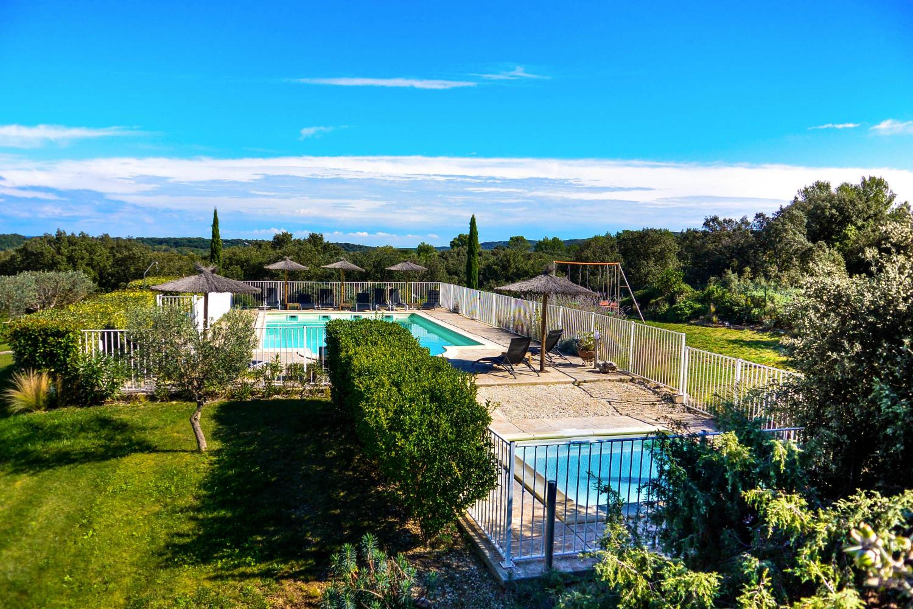 Hotel Restaurant Le Gardon, located near the Duchy of Uzès and Pont du Gard, offers a blend of modern amenities and comfort. Outdoor Oasis Enjoy the outdoor swimming pool, sun lounges, paddling pool, and terrace. Convenient Accommodations Air-conditioned rooms with LCD TV, tea/coffee facilities, and some rooms suitable for guests with reduced mobility. Delicious Dining Daily buffet breakfast, terrace dining, and an onsite restaurant serving local cuisine. Book now to experience the charm of Hotel Restaurant Le Gardon in Collias.