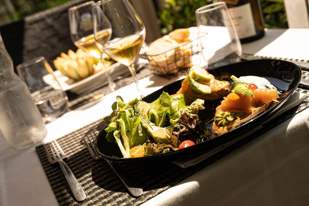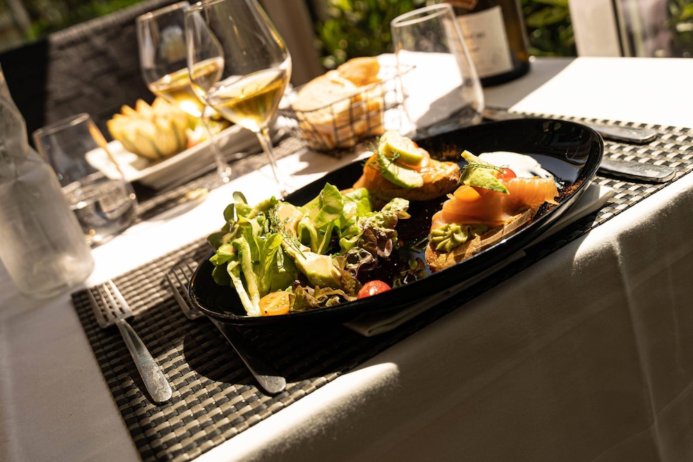 Unwind in one of the 33 well-equipped guestrooms featuring modern amenities like flat-screen TVs and rainfall showers, ensuring a comfortable and connected stay.