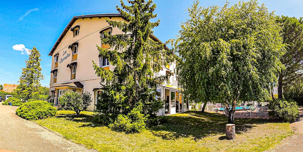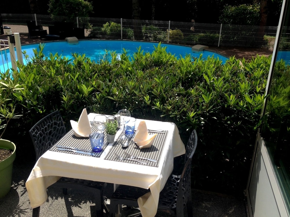 Indulge in the serene outdoor pool and picturesque garden for a tranquil experience during your stay at Les Charmilles.