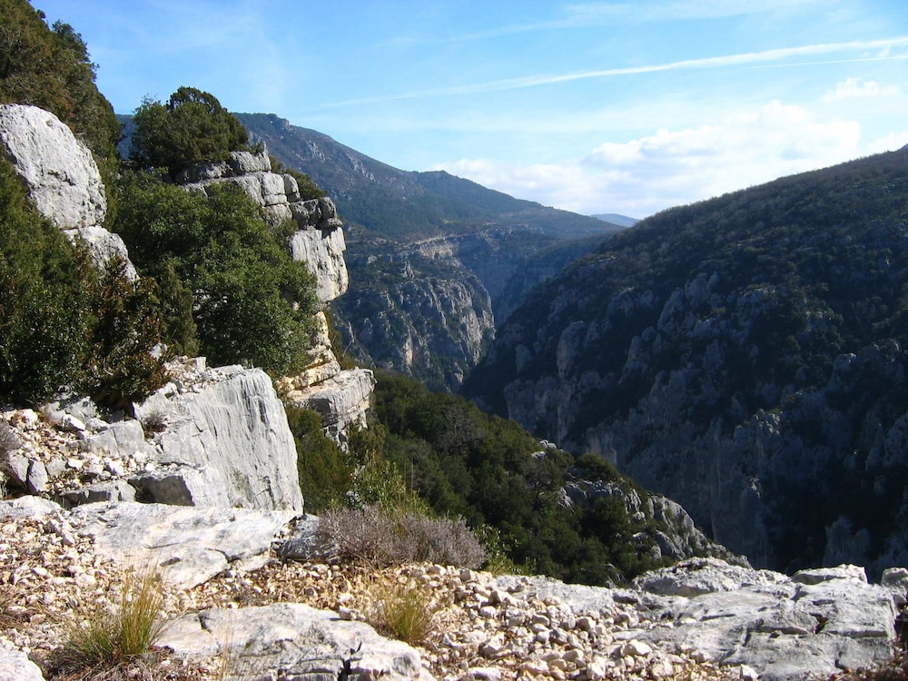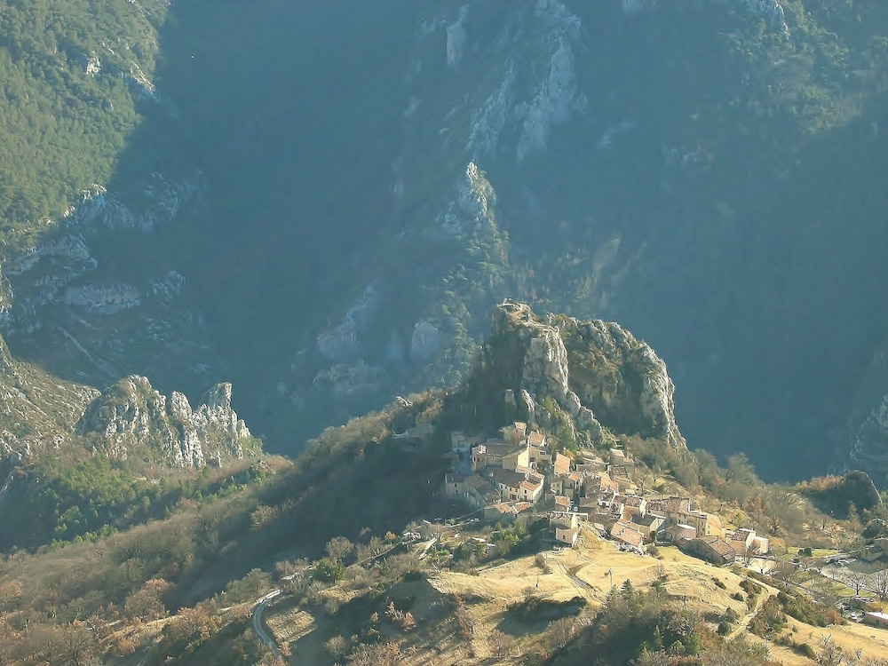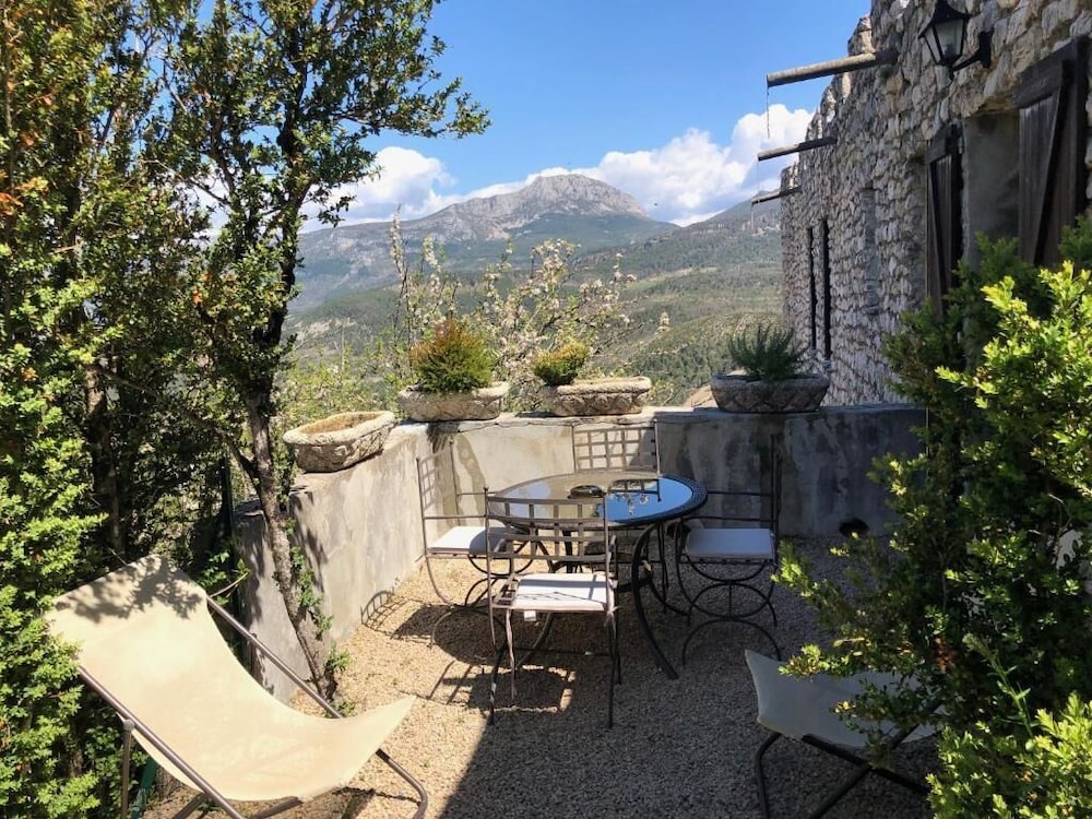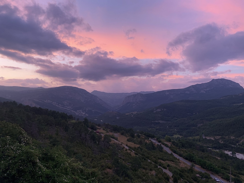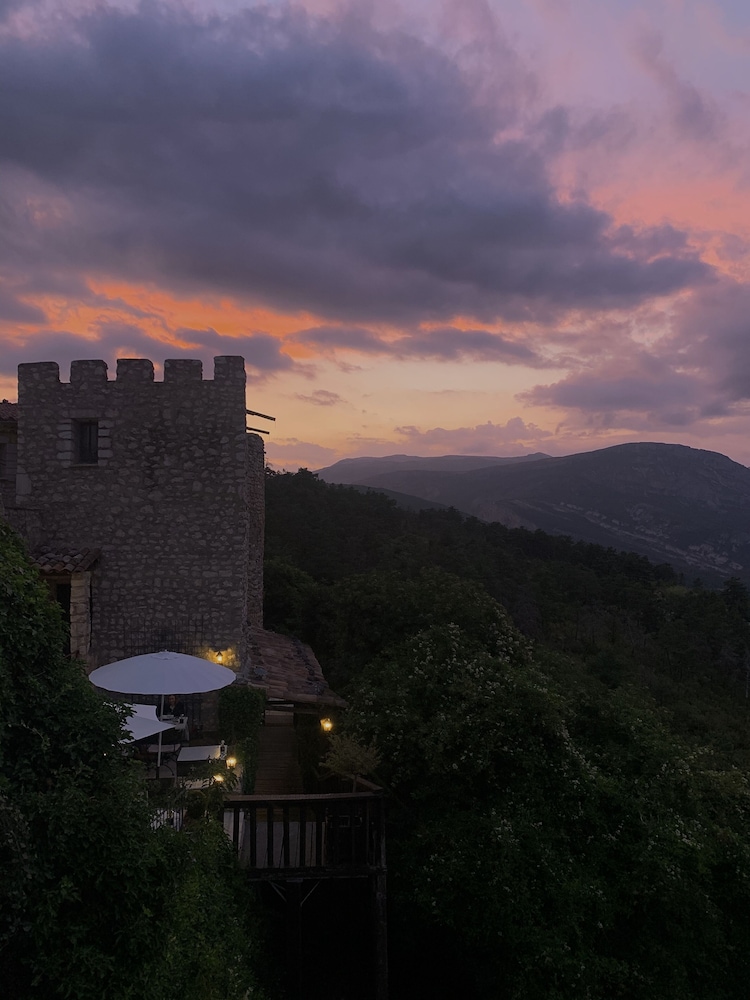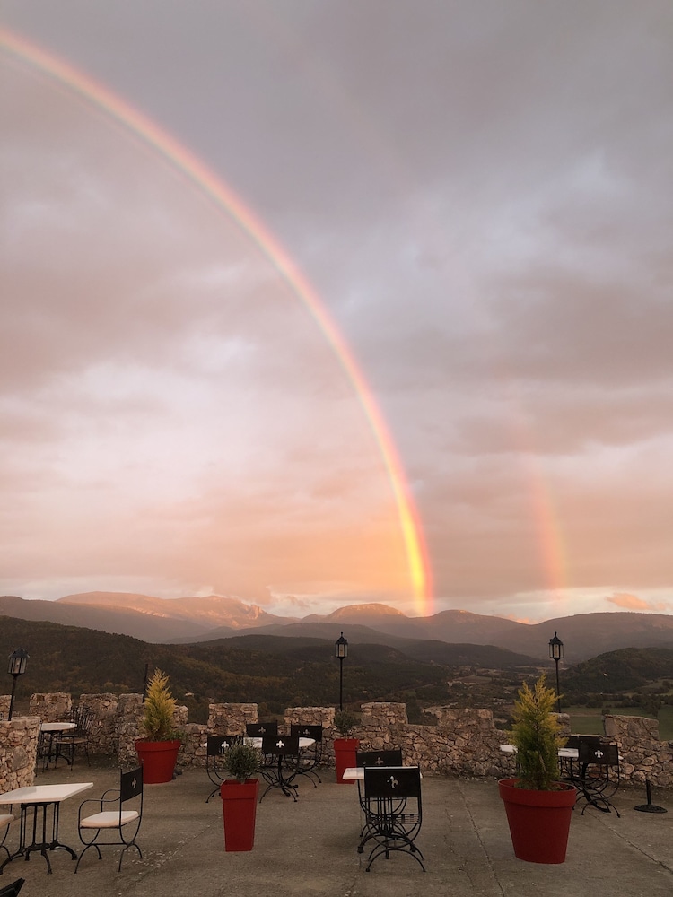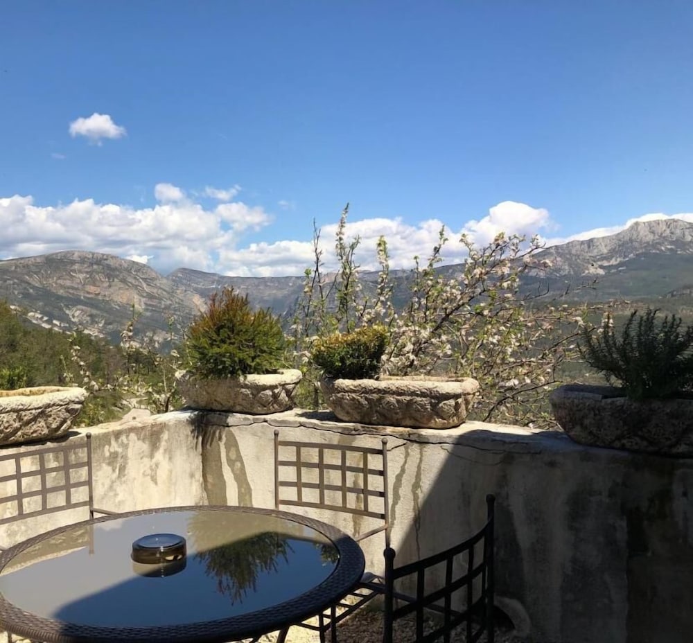 Lovely place! Well worth a visit, very quiet and a beautiful view all around. Quaint rooms, ours had a peaceful and very private little terrace. Restaurant ok but avoid the meat dishes; steak was tough and my agneau was really a very fatty mouton - great local wine though - Chateau de Sarrins . Good base for exploring the Verdon gorges.