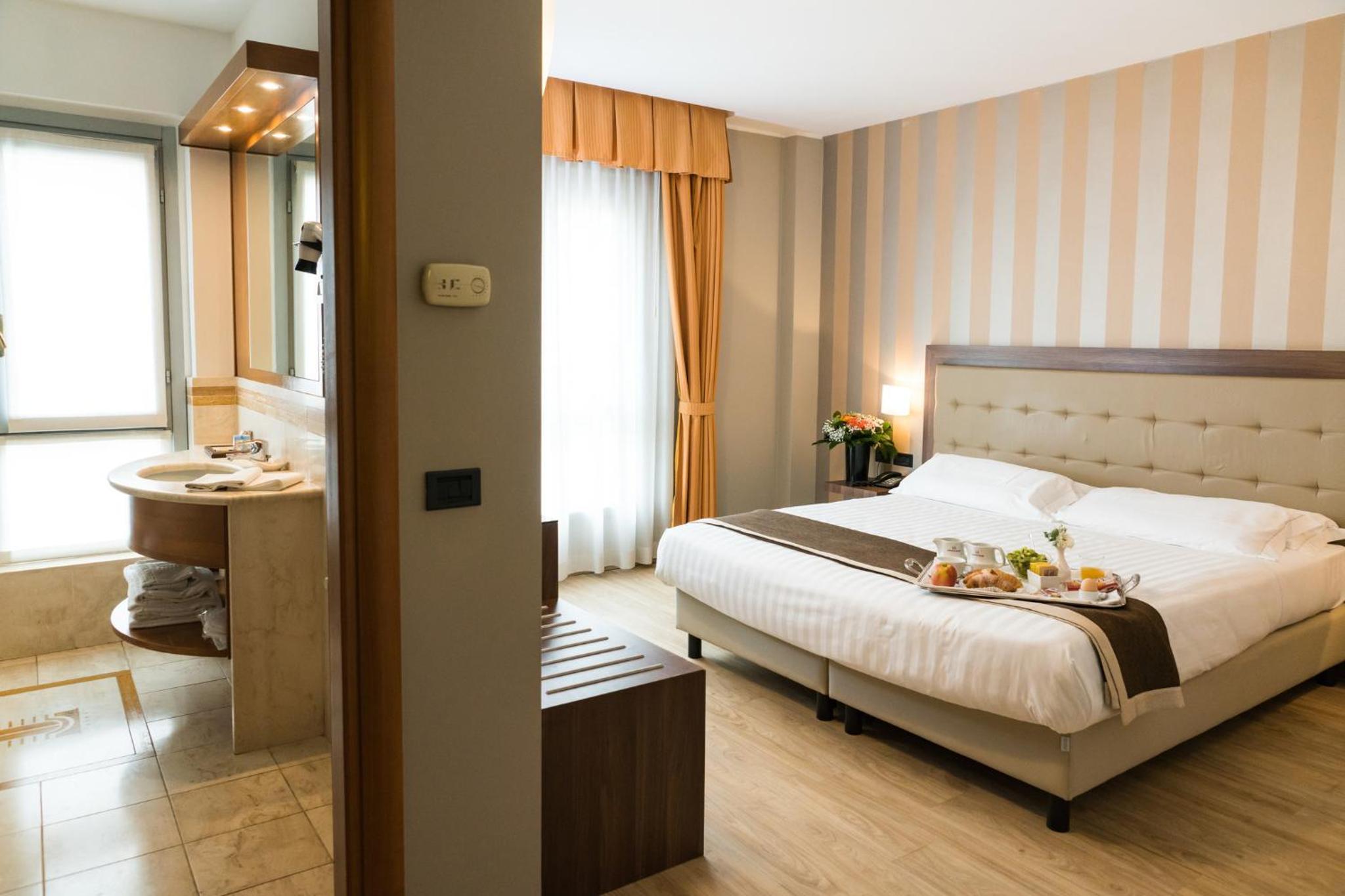 Indulge in air-conditioned rooms equipped with a flat-screen TV, Sky channels, and a minibar. Start your day with a delicious breakfast spread and explore the nearby Autodromo Nazionale Monza race track and vibrant local shops and eateries.