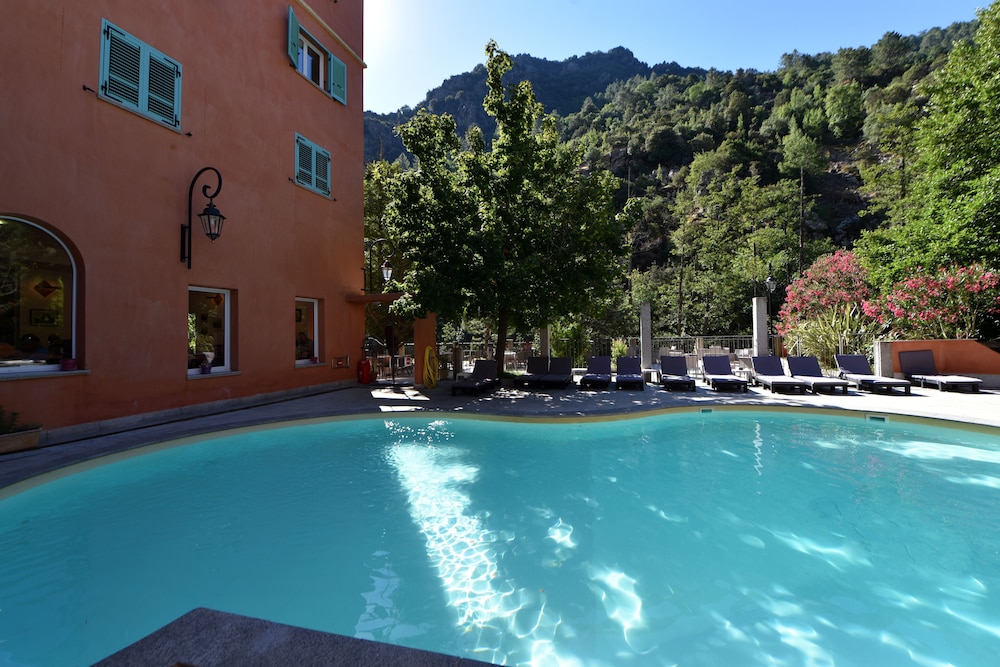 Très bien situé , juste à la sortie de Corte . On entend couler l’eau depuis les chambres. Très reposant . Belle piscine . Emilie la responsable très accueillante . Beau petit dej . On reviendra