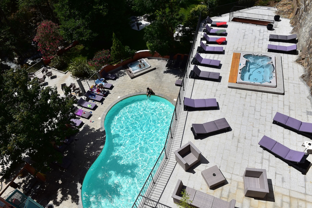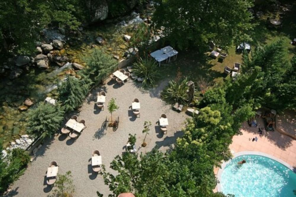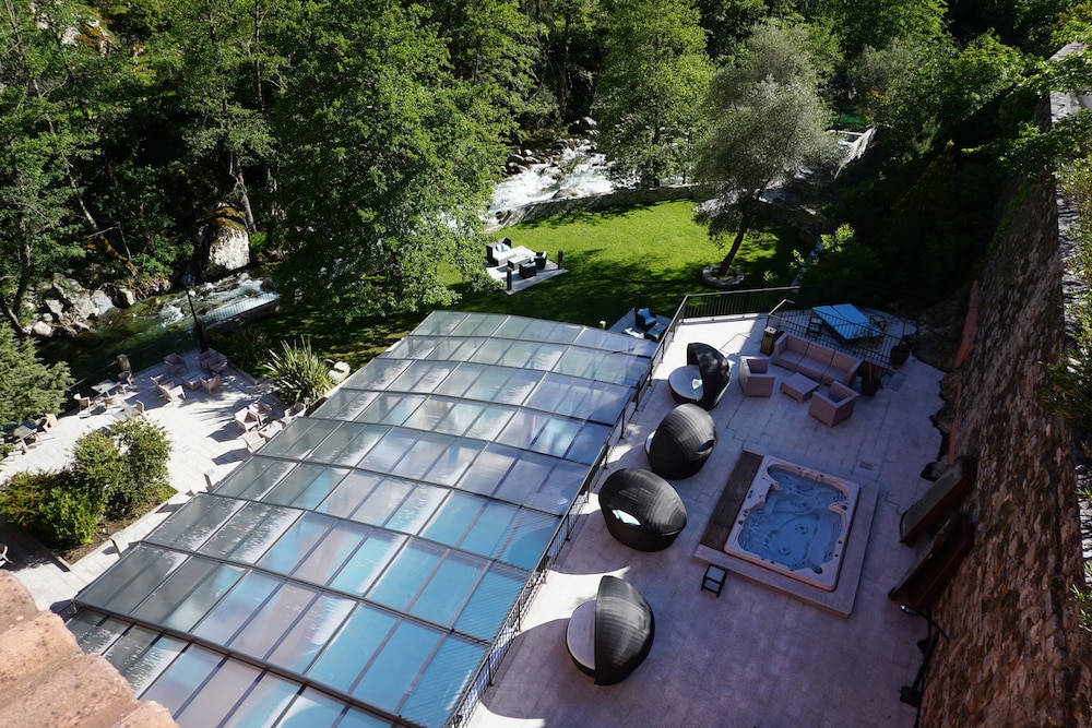 Avec piscine jacuzzi et rivière juste en bas de l’hôtel idéal pour tous.. les personnes qui tiennent cette hôtel sont attentifs et très sympathique avec les clients !!