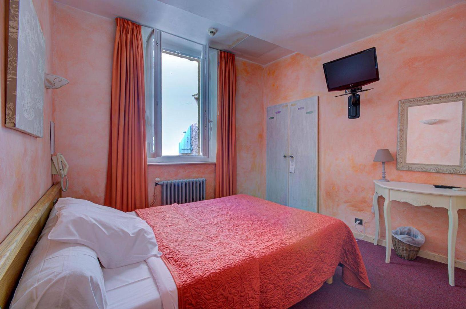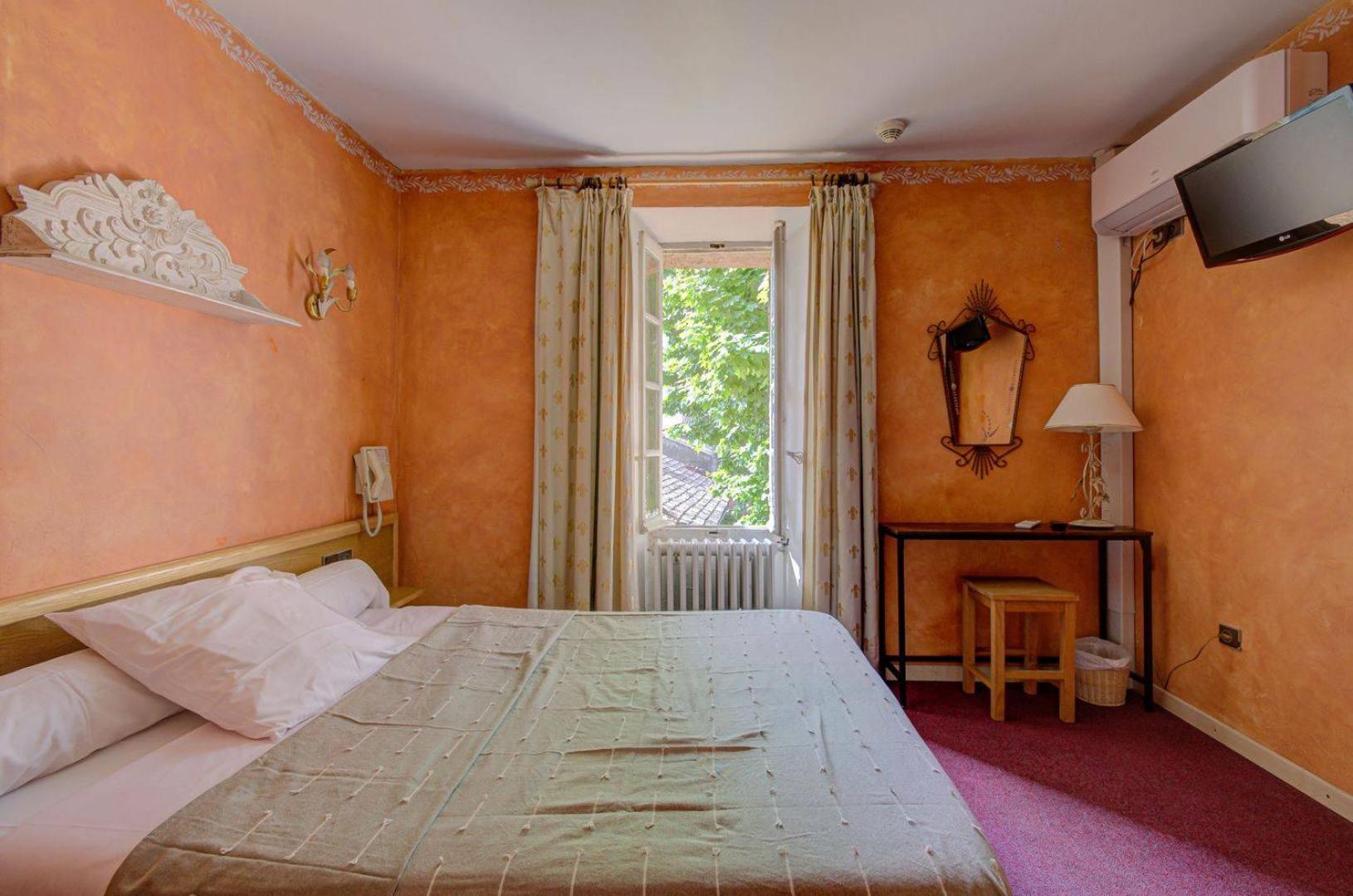 Hotel Saint Jean, nestled in Orange's heart just steps from the Roman Amphitheatre, welcomes you with its historic 17th-century post house charm. The uniquely decorated guest rooms, some with exposed rockwork, offer a blend of history and modern comfort with amenities like free Wi-Fi and air conditioning.
