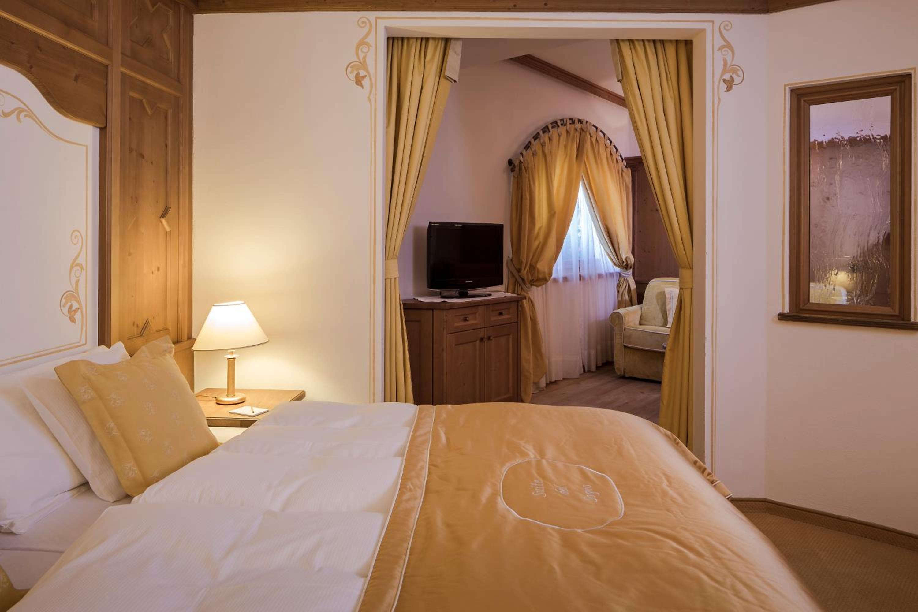 Очень хороший пятизвездочный отель в альпийском стиле около горнолыжного подьемника (и спуска). Просторный номер со всем необходимым, Гостеприимные хозяева и персонал, есть комната для хранения оборудования и свой прокат лыж (очень удобно, цены адекватные), парковка (сюда можно доехать на прокатной машине, а вот ближе к центру зона ZTL и могут быть вопросы с проездом), для ужинов - потрясающий мишленовский ресторан (недешево, но обязательно к посещению хотя бы один раз). Уютное лобби с баром и камином по вечерам. Завтраки хорошие. До центра городка с кучей ресторанчиков, баров, кафе и магазинов примерно 5-10 минут пешком через симпатичный парк. Цена адекватная уровню сервиса, рекомендуем для любителей покататься на горных лыжах и погулять по заснеженным Альпам.