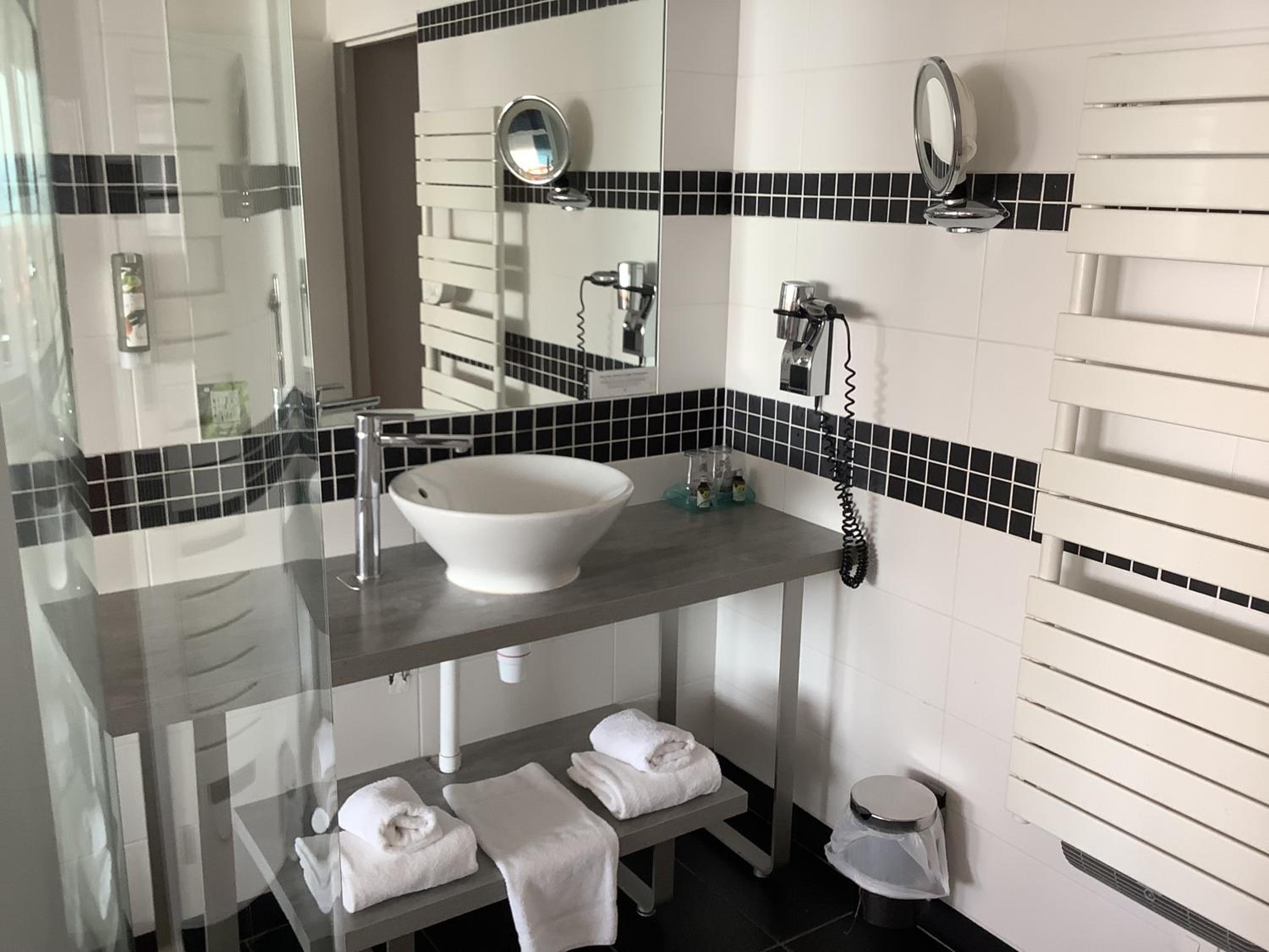 Chambre spacieuse silencieuse et impeccable, literie de qualité, température confortable, salle de bain et toilettes nickels, vue sur la mer.