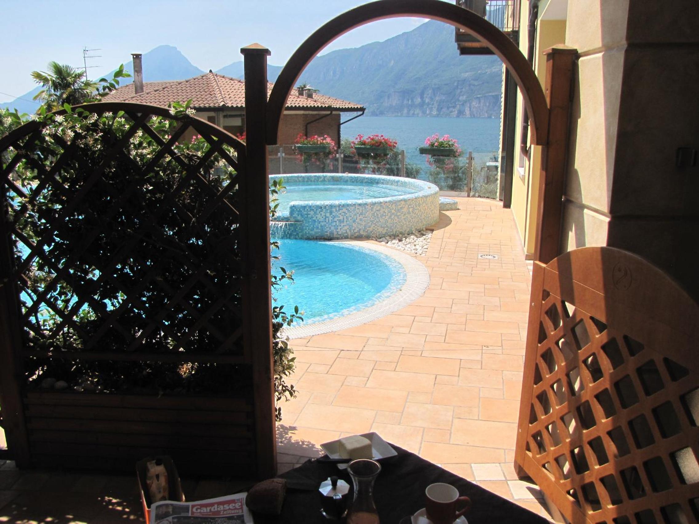 Das Hotel ist einfach super, sehr freundliches und hilfsbereites Personal, die Ferienwohnung ist bestens ausgestattet von Kaffeemaschine über Mikrowelle, Wasserkocher, Toaster es standen sogar Tee, Kaffee, Marmelade, Plätzchen Spaghetti und Tomatensauce auf dem Tisch. Die Lage ist auch mega schön ,Balkon mit Seeblick, zum See muss man nur über die Straße. Der Pool ist auch top mit Liegewiese und ausreichend Liegen. Rund herum gesagt einfach Klasse, wir kommen wieder.