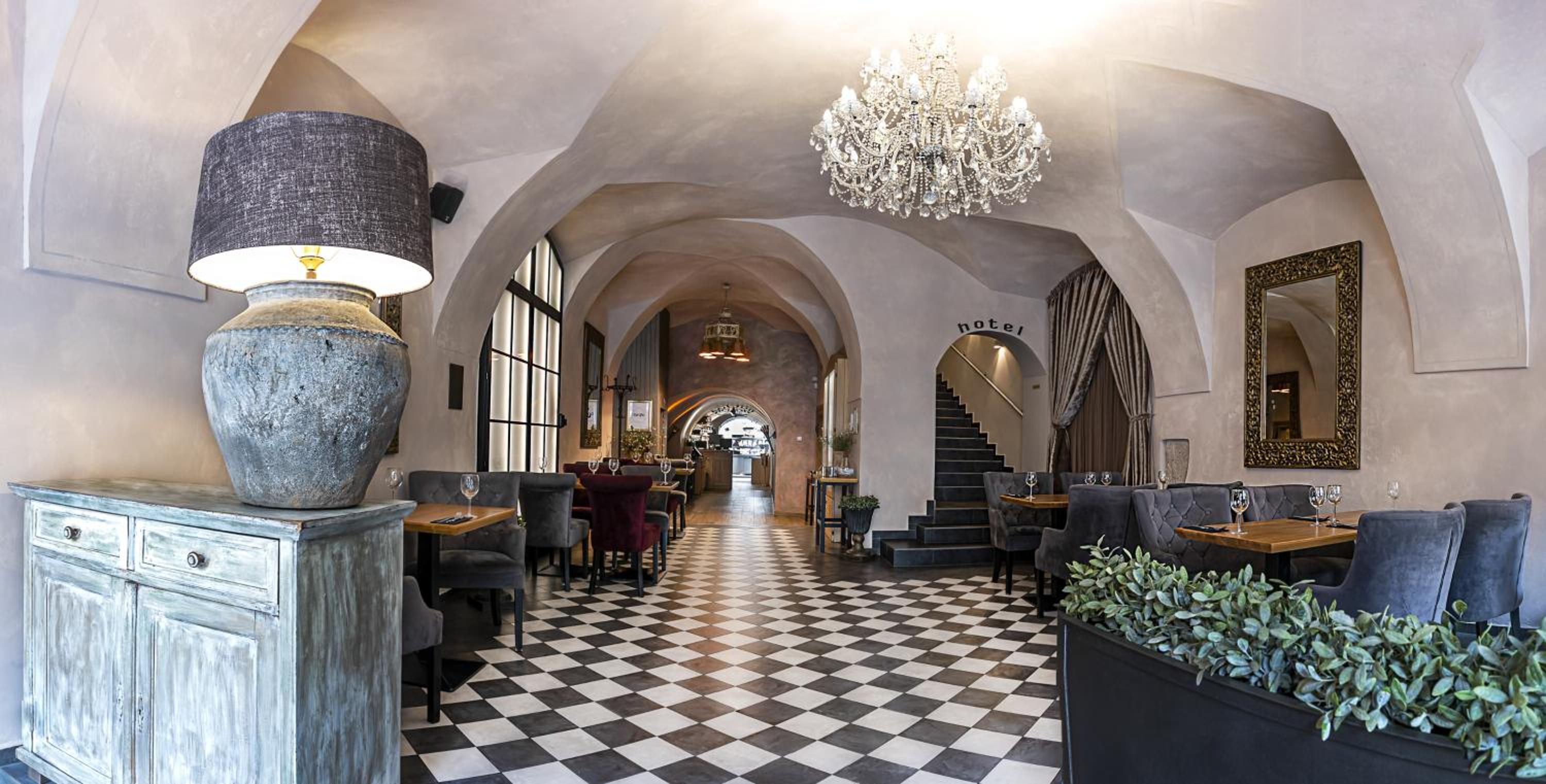 Indulge in Mediterranean specialties and a selection of Czech and international wines at the hotel's restaurant. The 16th-century vaulted cellar provides an exquisite setting to savor the authentic taste of Mediterranean cuisine.