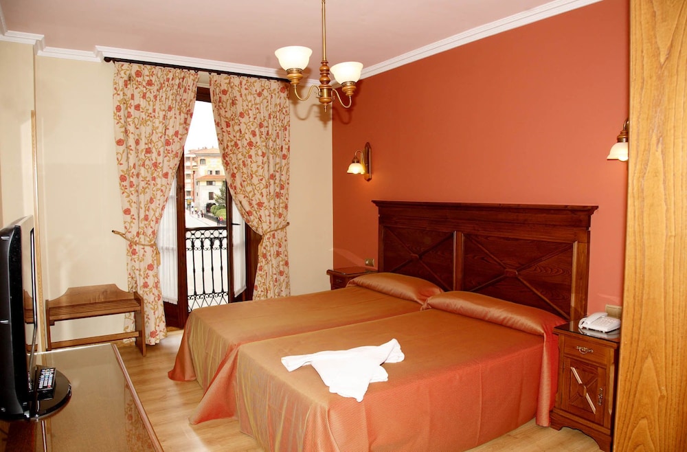 Buen hotel para visitar Cangas de Onís y otras zonas cercanas, ya que al estar en la entrada se va muy bien sin necesidad de estar metiendo el coche en el centro. Algo difícil aparcar.. aunque siempre hay una zona cercana donde por 2e lo puedes dejar. El desayuno está bien, con zumo natural y café, recién hechas ambas cosas. El personal es muy amable.