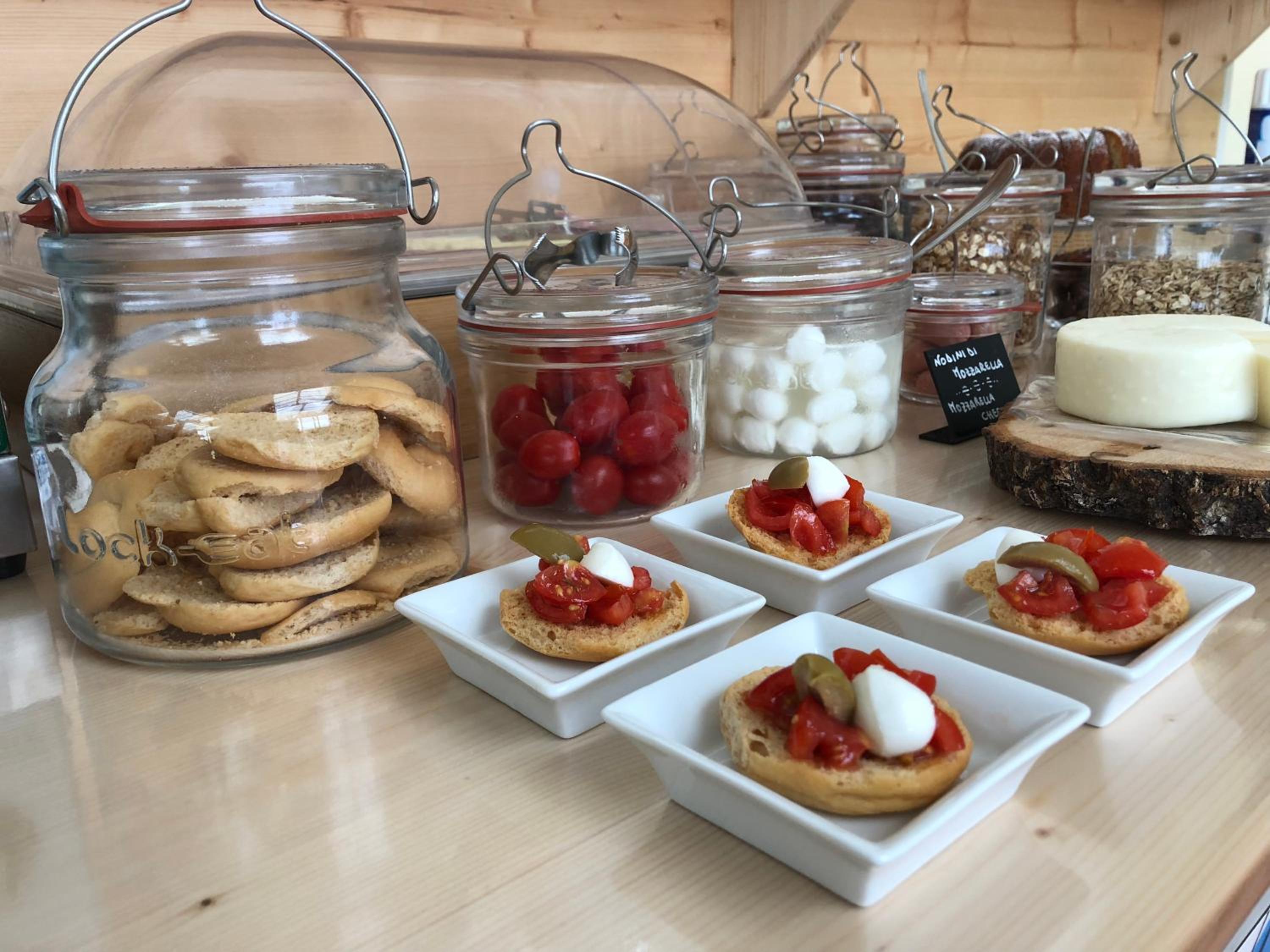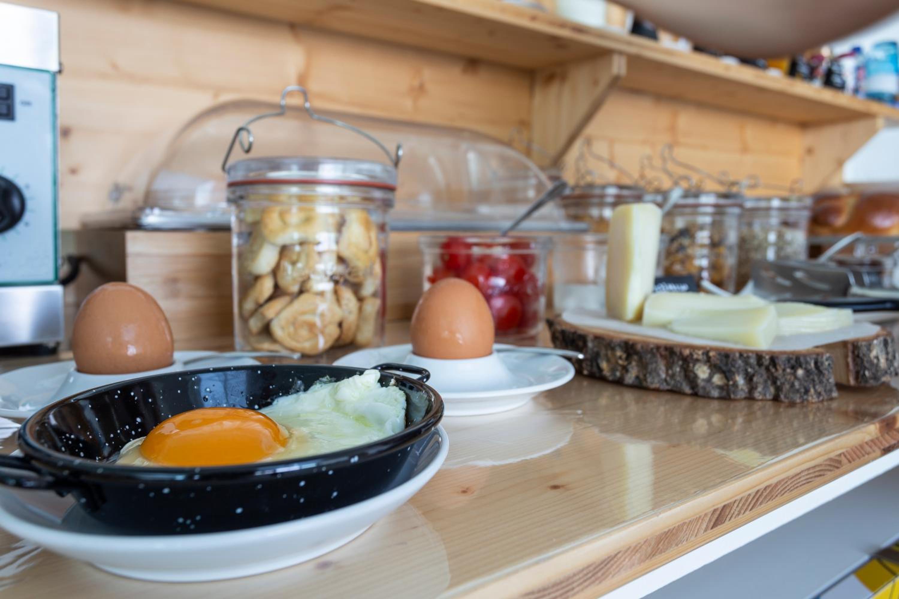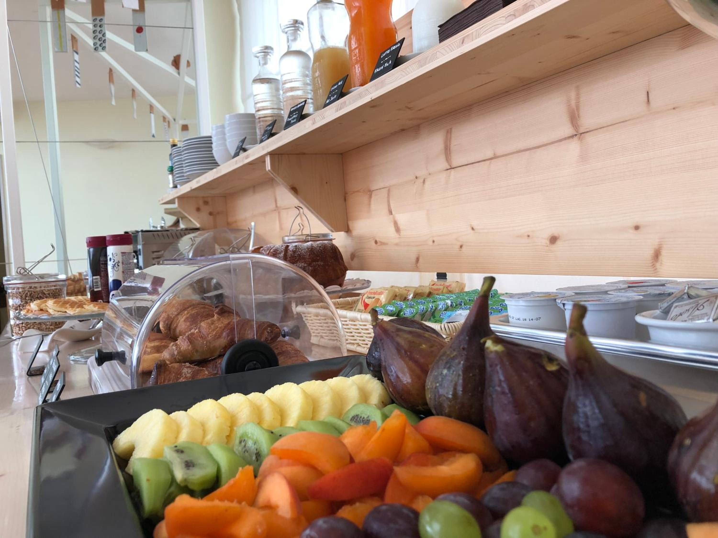 Colazione con buoni prodotti salati e dolci.