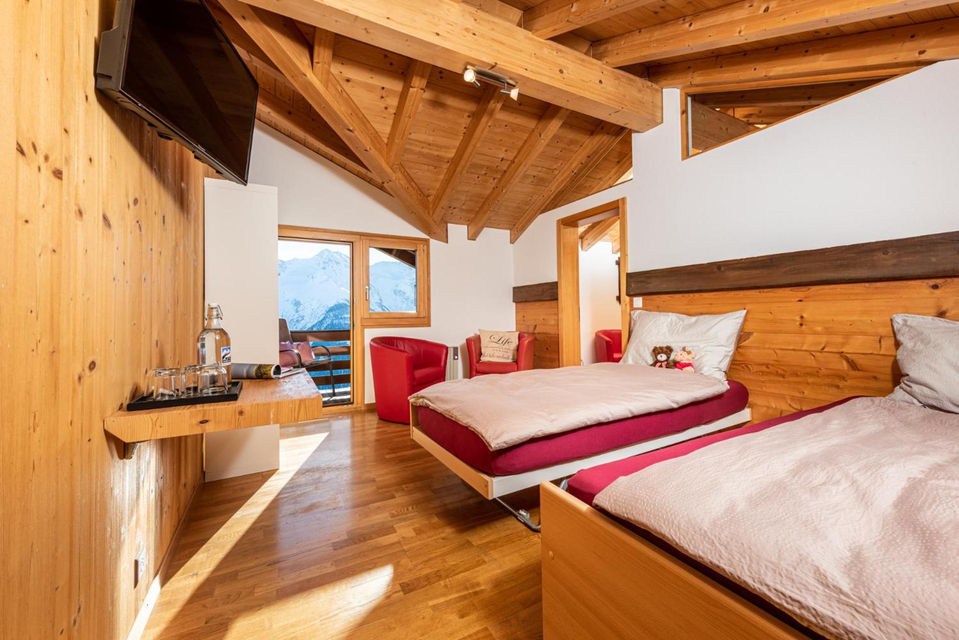 Experience comfort in rooms with satellite TV, a balcony, and breathtaking views of the Matterhorn and Weisshorn.