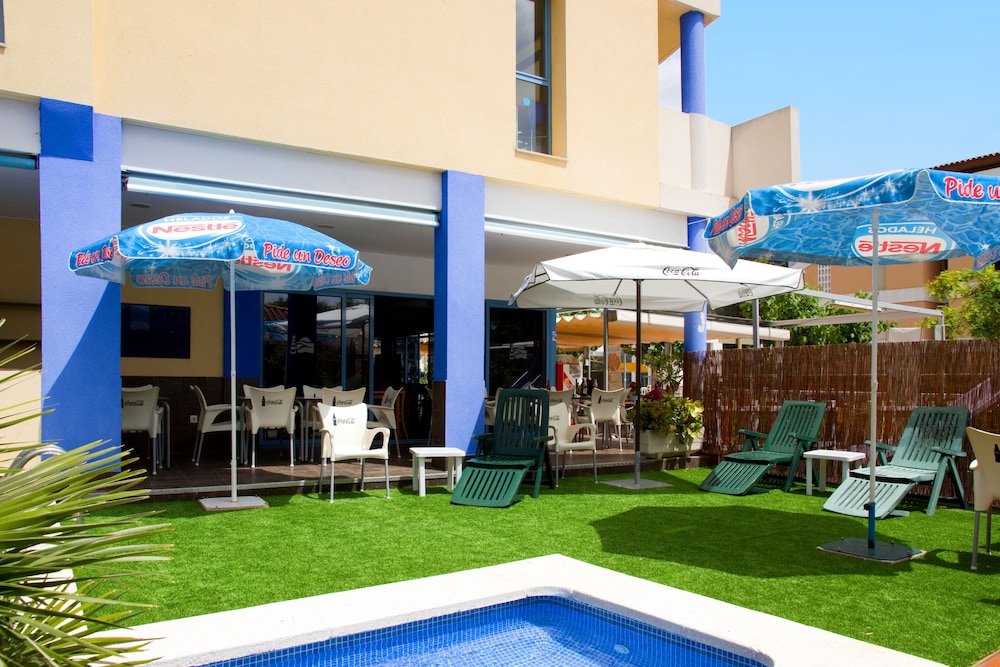 Проживали в этом отеле 11 дней в начале сентября. В общем, отель произвел хорошее впечатление. К достоинствам можно отнести: очень близкое расположение к морю(идти пешком 1 минуту), приветливый персонал, милый ресторанчик при отеле, в котором готовят потрясающую Поэлью с морепродуктами! На территории есть также небольшой бассейн, в нем не купались, ничего сказать про него не могу. В номере из достоинств: мебель новая, огромный шкаф. К недостаткам, я бы отнесла отсутствие фена(но можно взять на ресепшен за символическую плату), минимальный набор посуды, поэтому готовить непросто. Холодильник с открытой морозилкой, которая замораживала нам все продукты, в том числе и те, которые просто стояли на полке к холодильнике. В номере довольно душно, но есть кондиционер, хотя у нас последние дни он работал очень плохо! уборки за все время я так и не увидела, только 2 раза девушка приходила менять наши полотенца. Но! отель все же оставил приятное впечатление, так как за небольшие деньги мы получили квартиру у моря. Если "пальцы не гнуть", то очень достойный вариант! так что рекомендую!