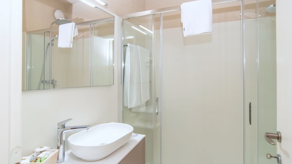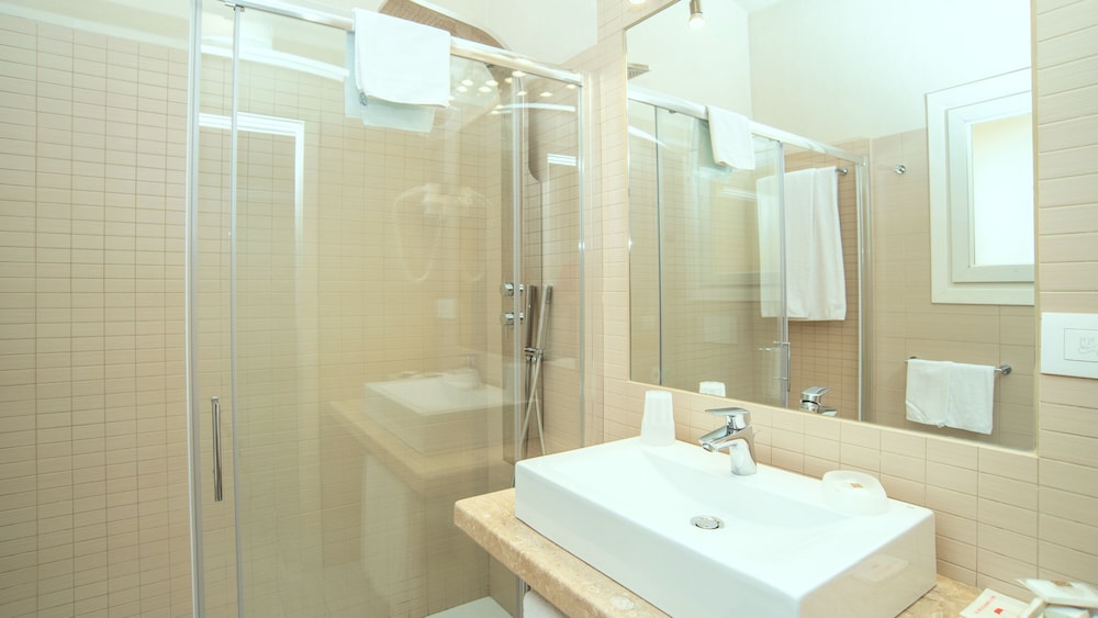 Nice place, room was cleaned every day. Breakfast was a typical continental one you get in Italy. Pool was little too cold for us. Gym was very well equipped. Friendly and helpful staff. However walls of the rooms are very thin, you hear anything your neighbors are doing. No shops/restaurants around
