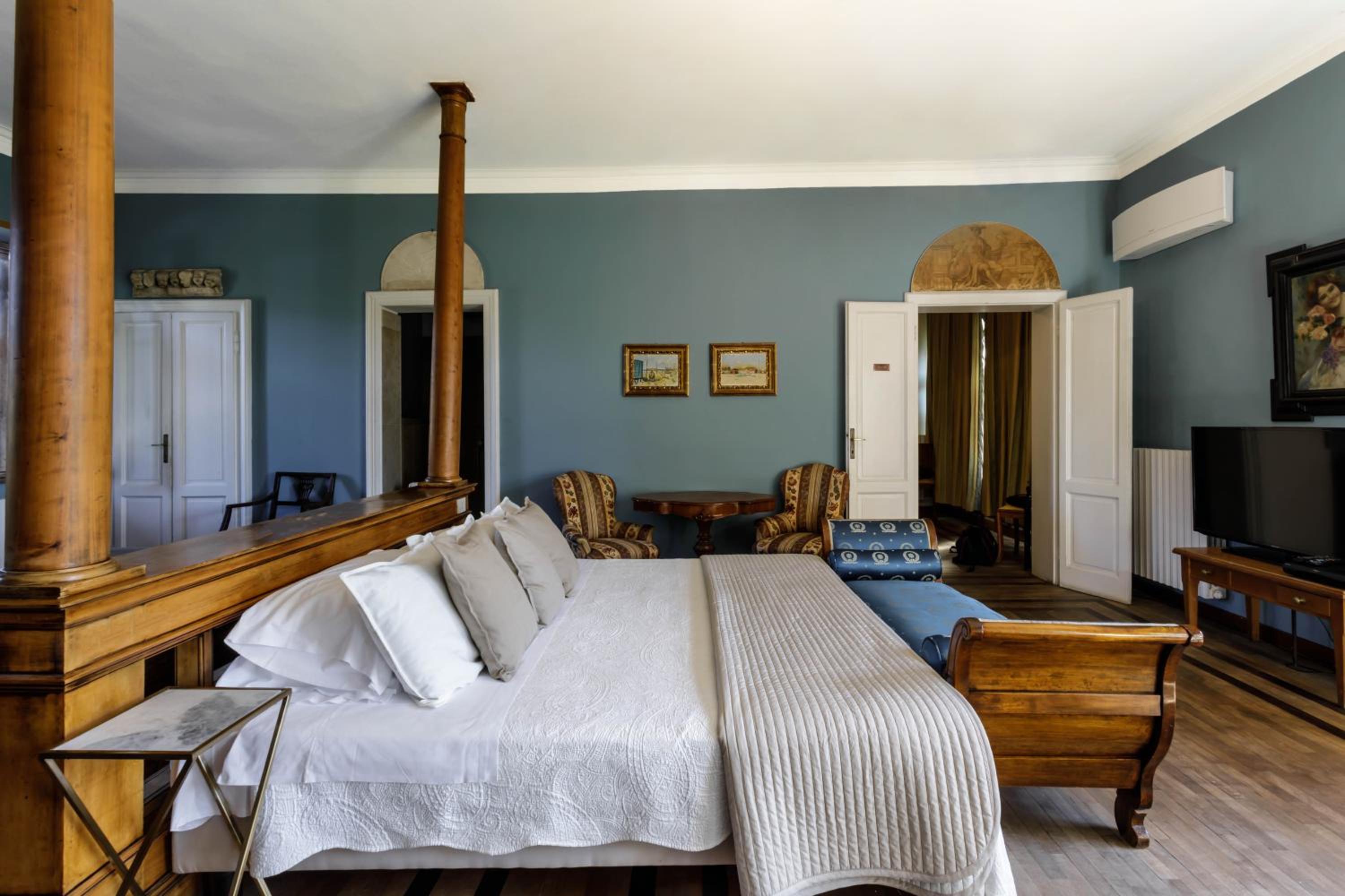 Struttura dotata di un fascino di altri tempi. Apprezzata la comodità e le dimensioni del letto, la vasca jacuzzi, le tante finestre, il comodo e ampio parcheggio e la dimensioni della camera.