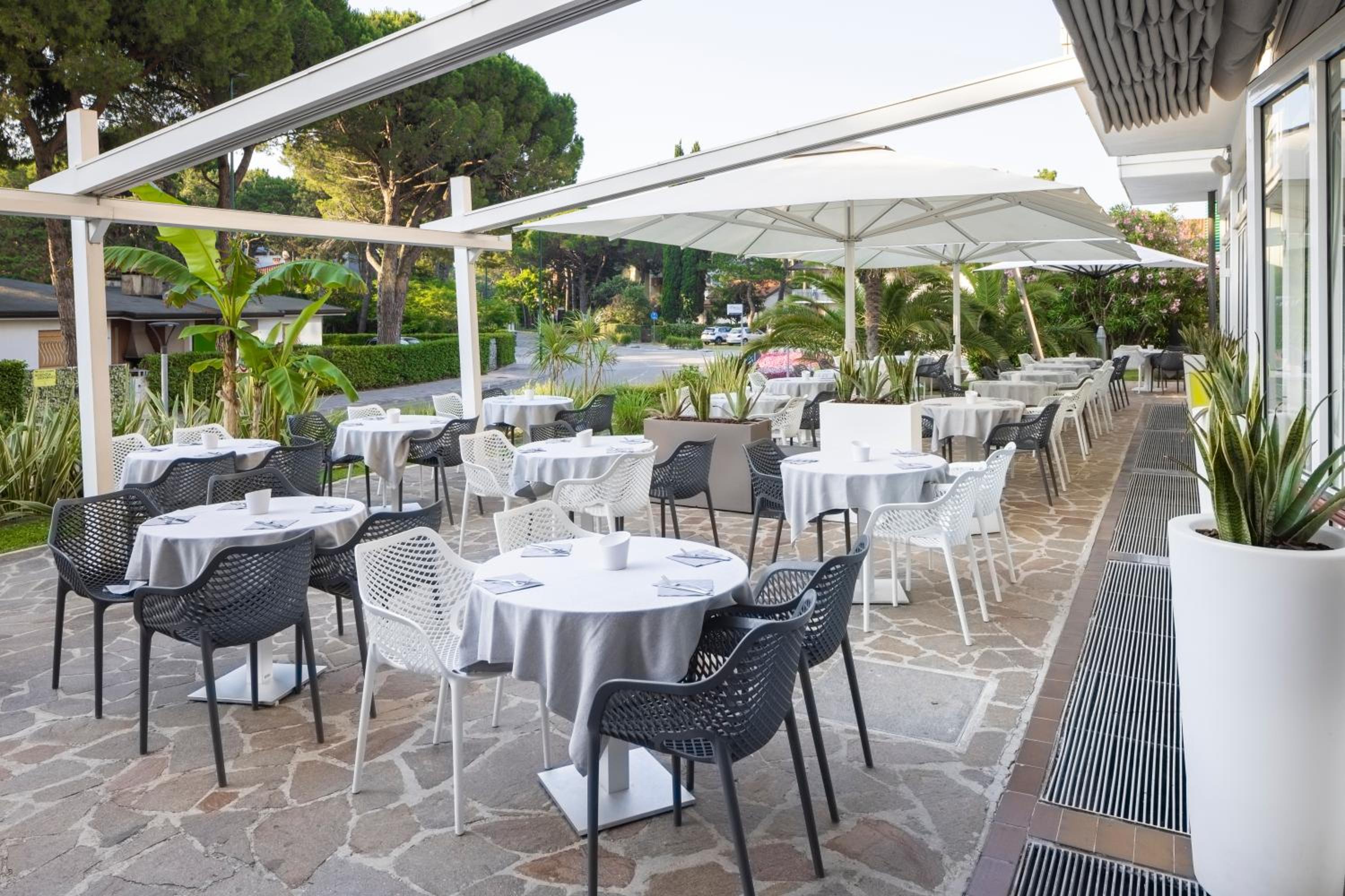 Indulge in the elegant restaurant serving Mediterranean delights and enjoy meals on a beautiful terrace. Half-board and full-board rates include complimentary beach service.