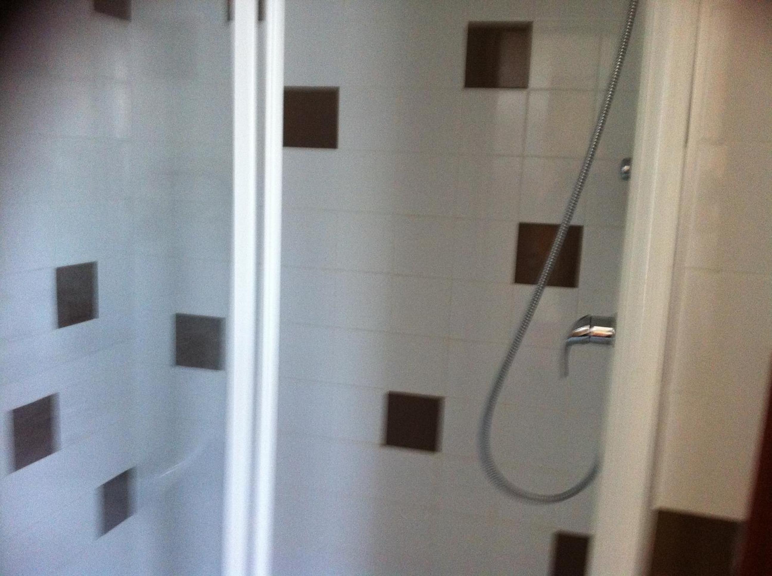Les carreaux de la salle de bain étaient cassés.