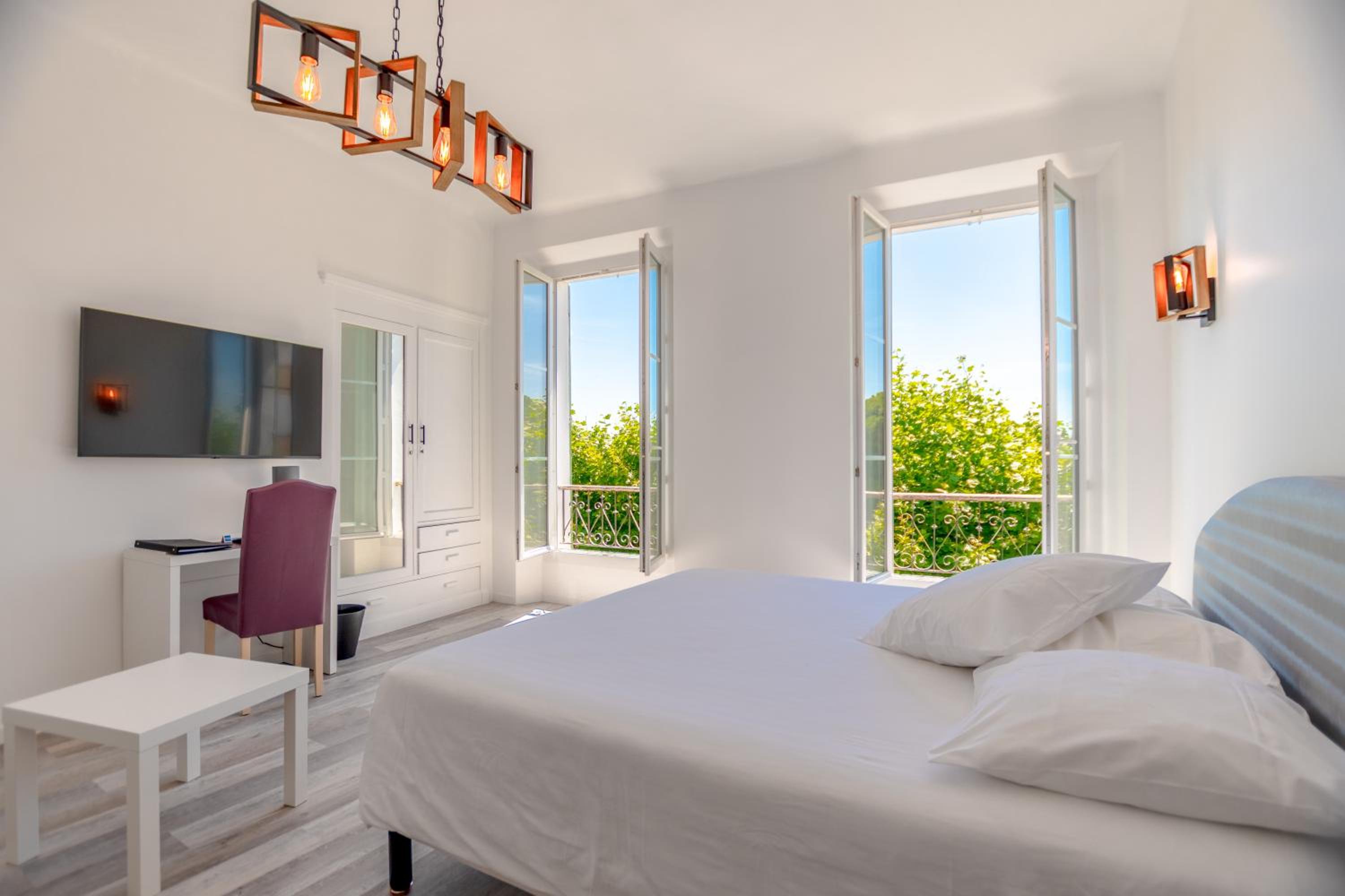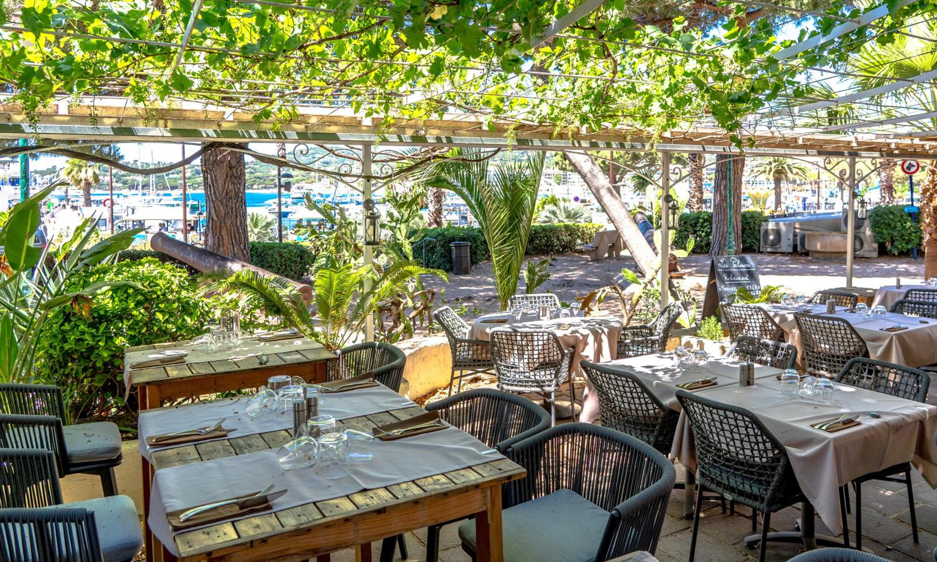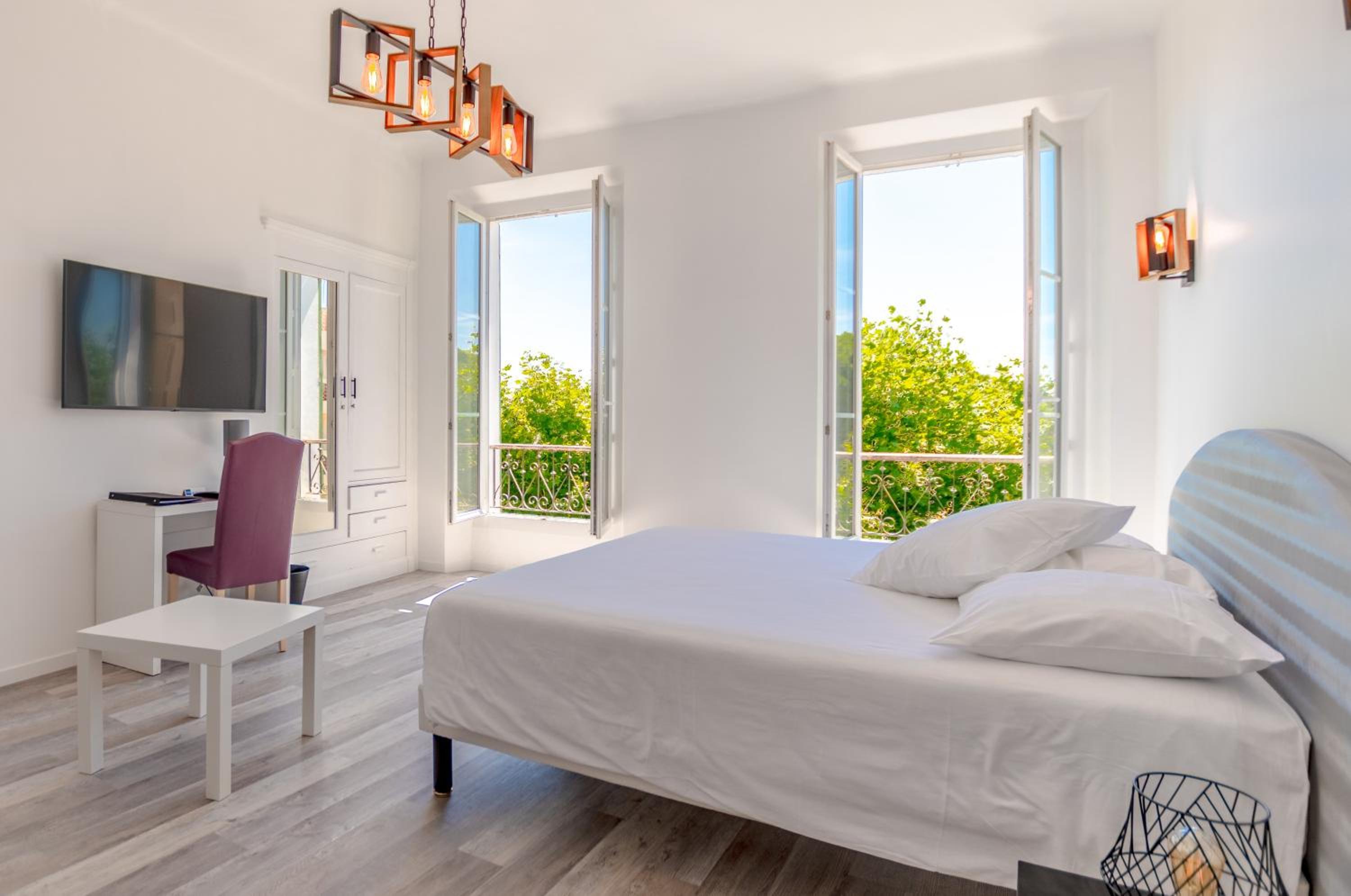 Hotel Les Palmiers, established in 1888, seamlessly blends historic charm with modern comforts. Enjoy air-conditioned rooms with private bathrooms, just steps away from ferry connections to St Tropez.
