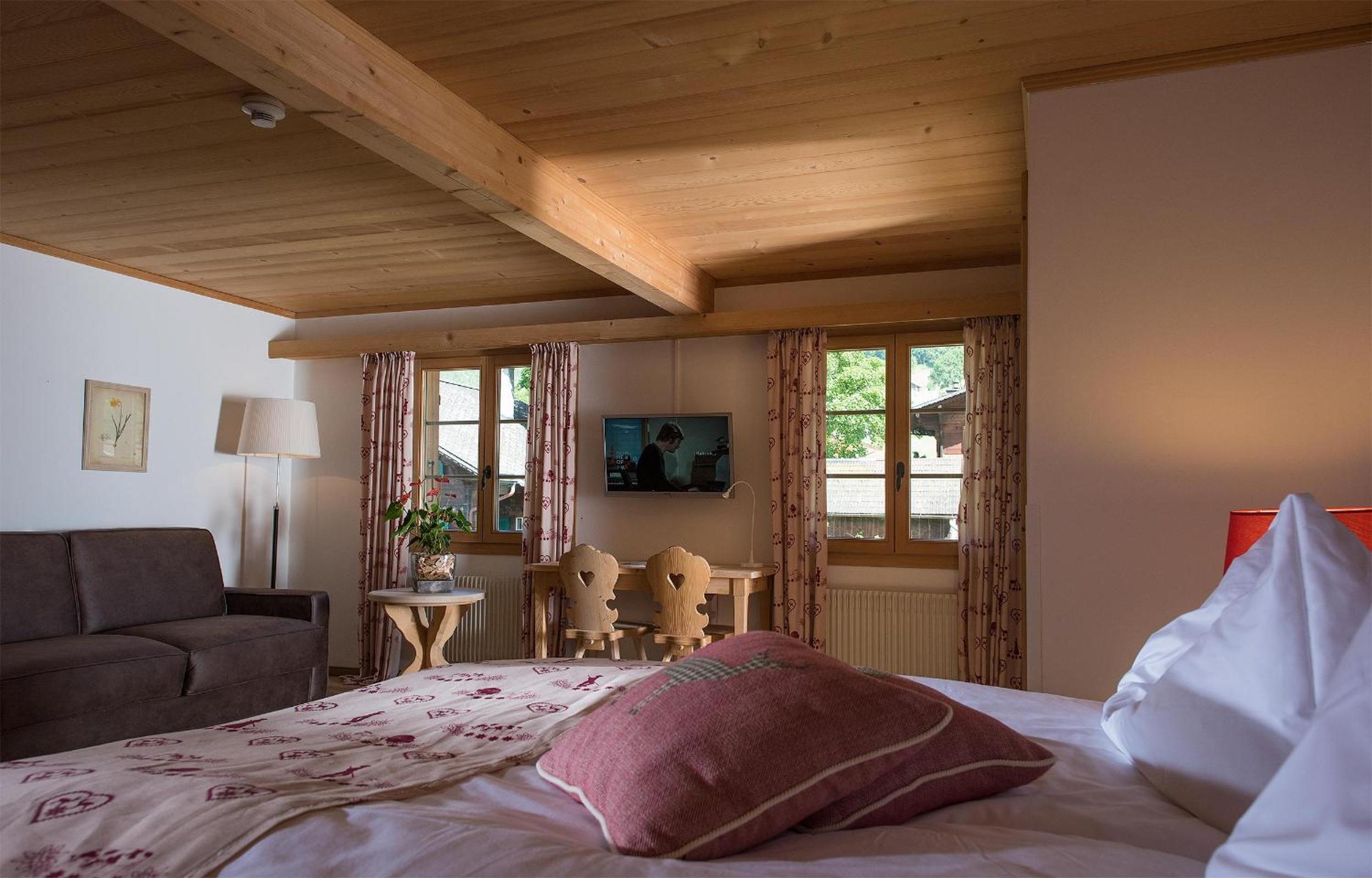With cable cars to Horneggli and Rellerli a short walk away, the hotel serves as a perfect base for exploring hiking trails, mountain biking routes, ski slopes, and cross-country skiing tracks in the Gstaad-Saanenland region.