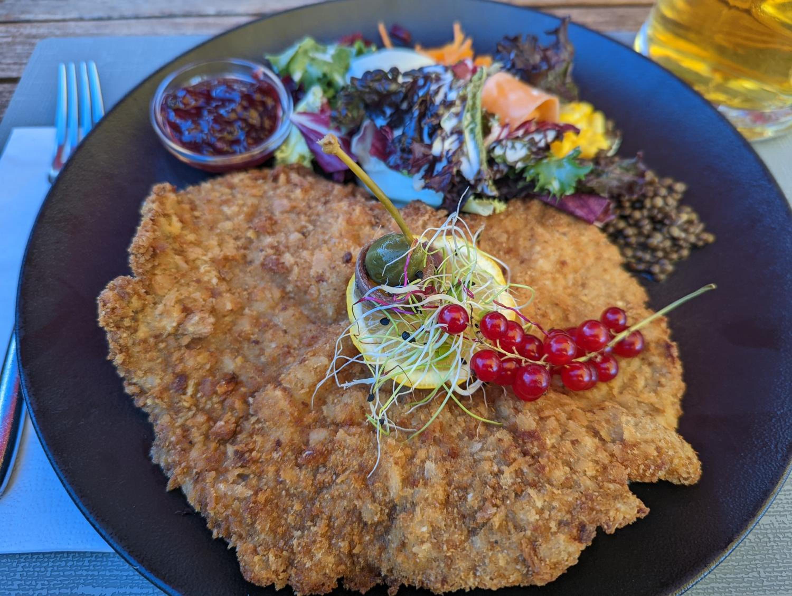 Und die Sonnenterrasse außen bietet einen unfassbaren Ausblick auf das wunderschöne Alpenpanorama. Ich kann jedem nur empfehlen dort mittags mal Platz zu nehmen und ein leckeres Käsefondue, aus Käse von der Molkerei direkt gegenüber, zu essen oder einfach nur etwas zu trinken und den Moment zu genießen.