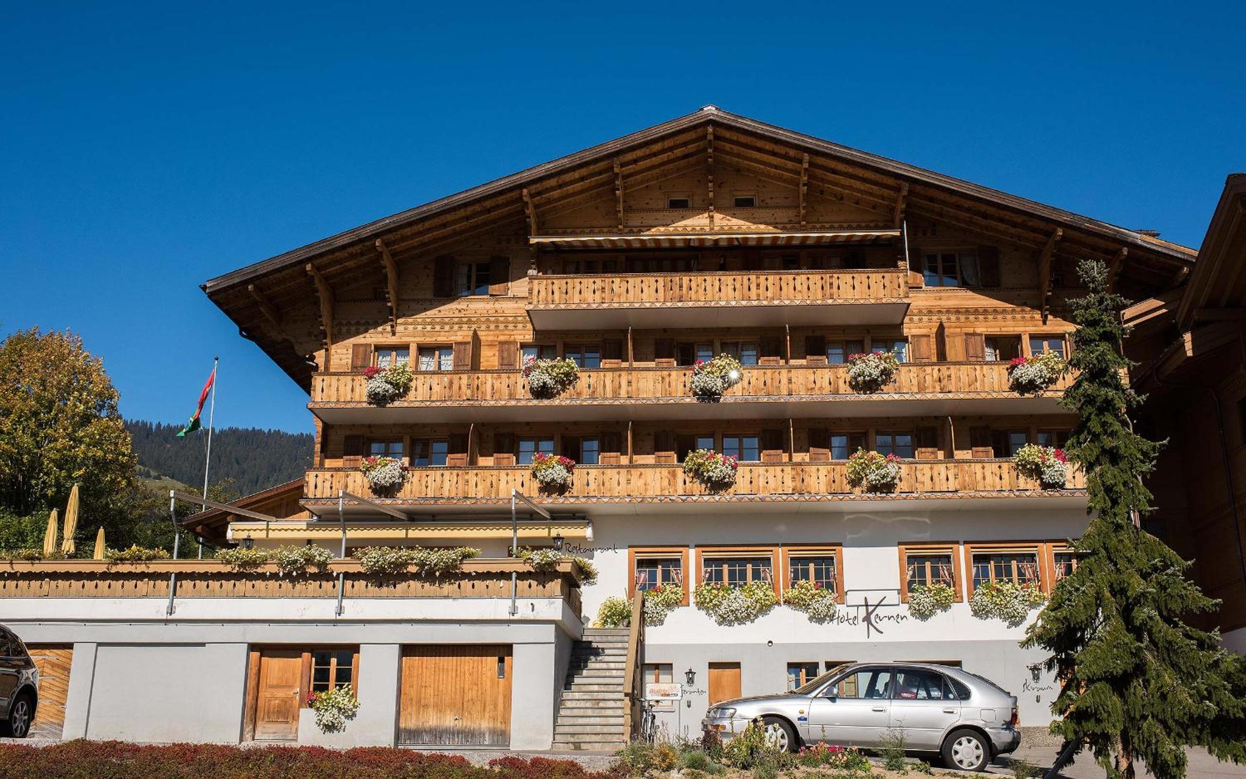 The Hotel Kernen, situated near Schönried train station, offers elegantly furnished rooms with balconies showcasing stunning mountain views.