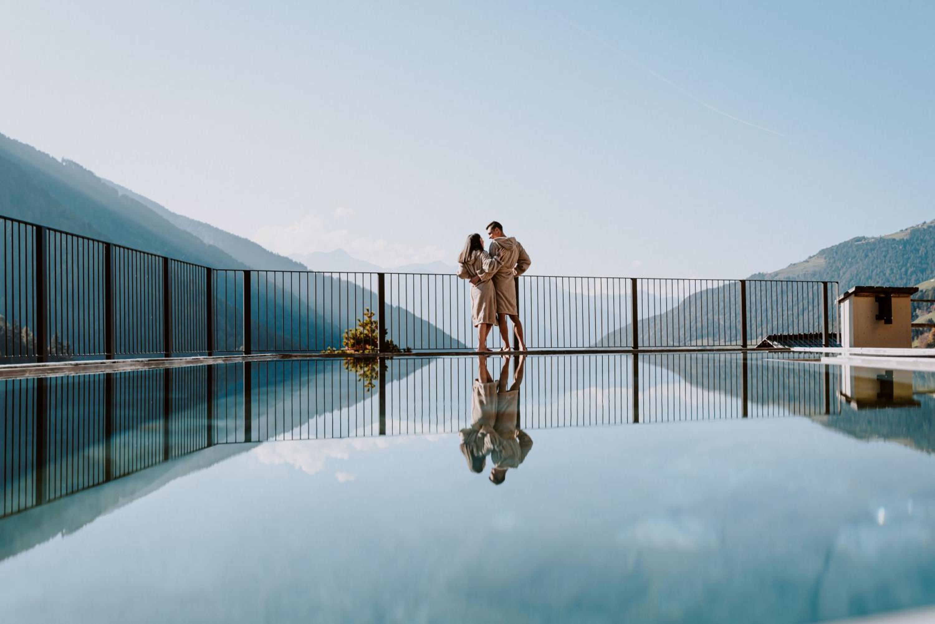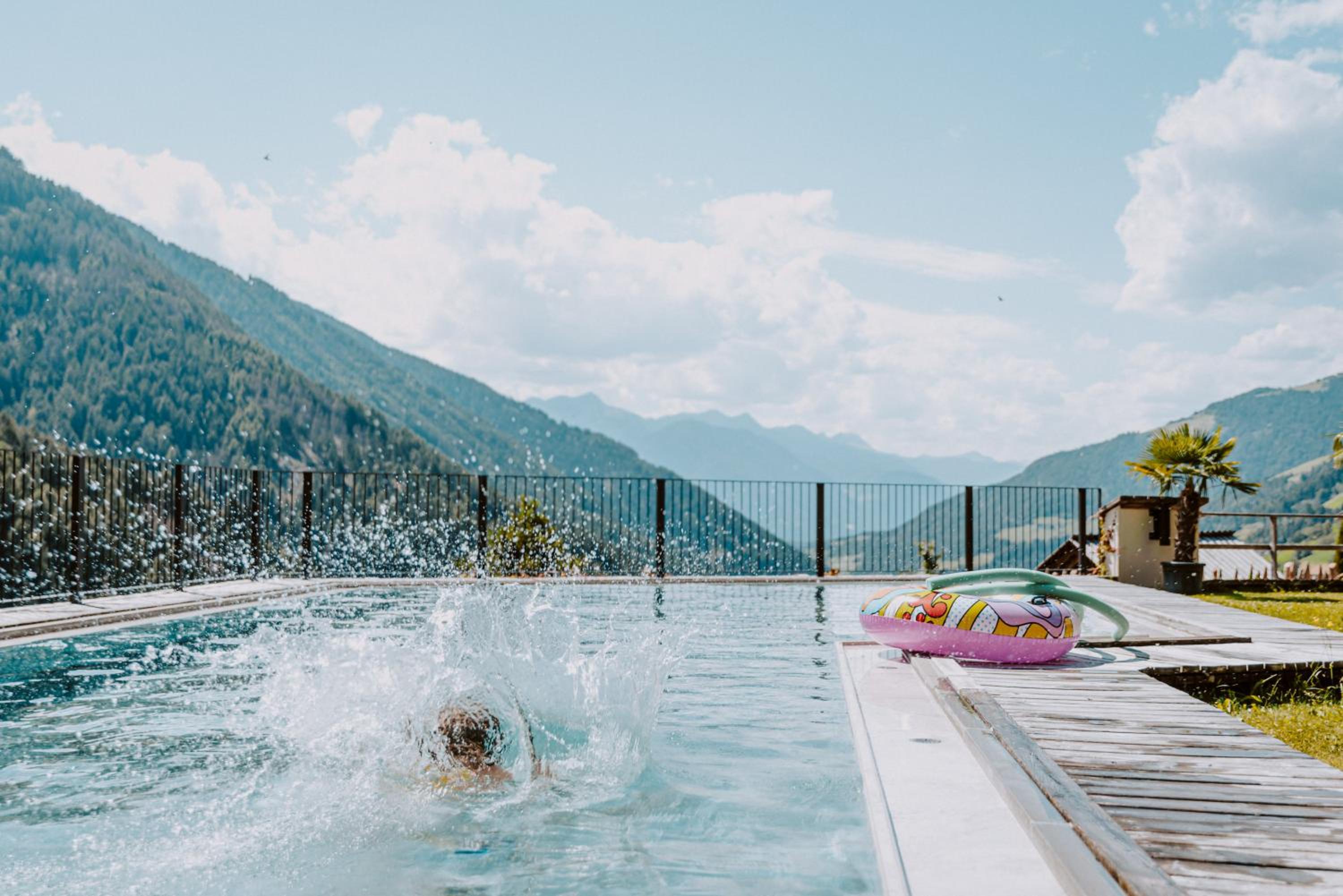Tranquil Escape: Unwind in 2 swimming pools, a sauna, or Jacuzzi on the panoramic terrace, surrounded by South Tyrol's beauty.