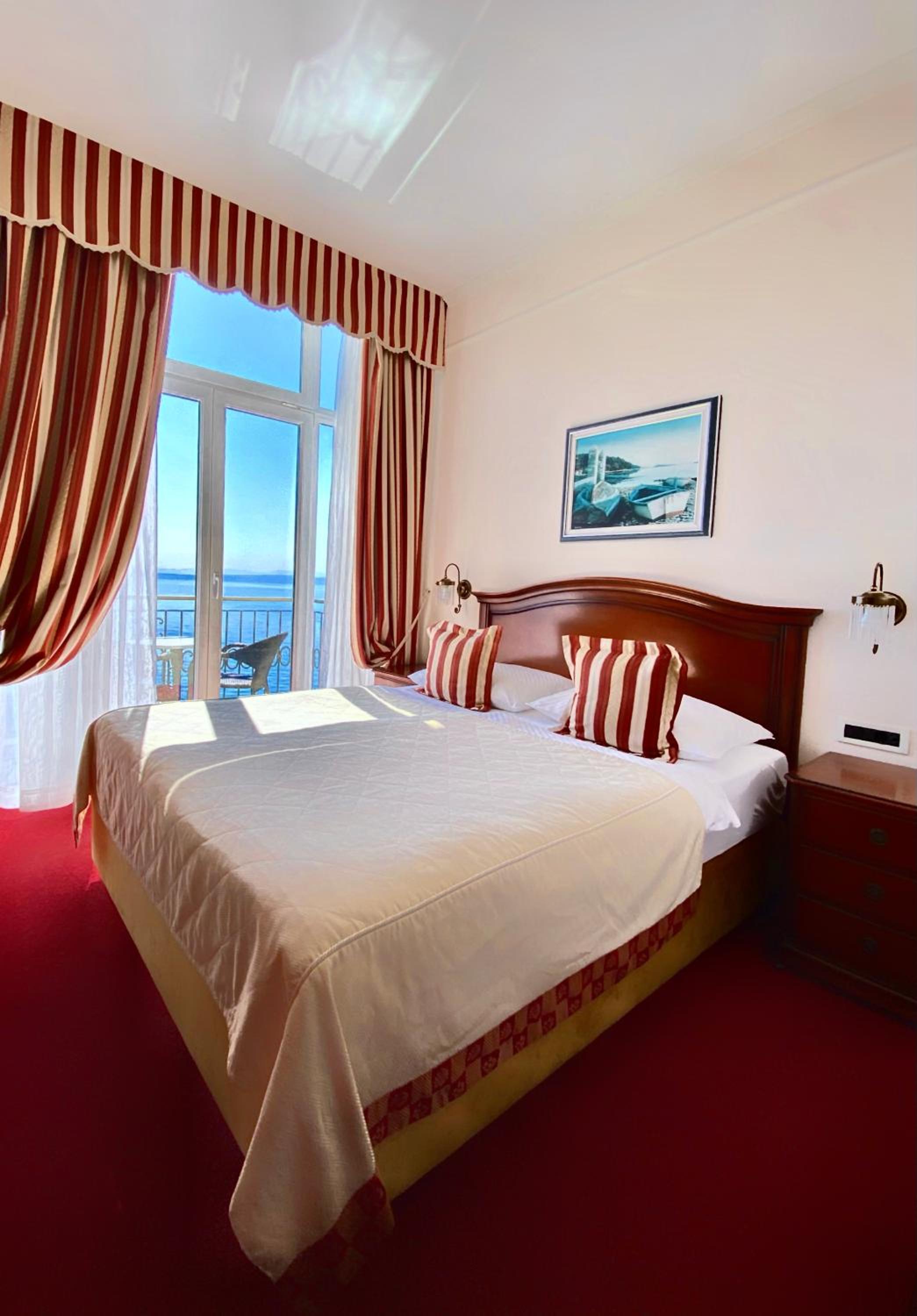 Hotel Savoy, located in the heart of Opatija, offers luxurious rooms with elegant interiors and balconies overlooking the stunning Kvarner bay.