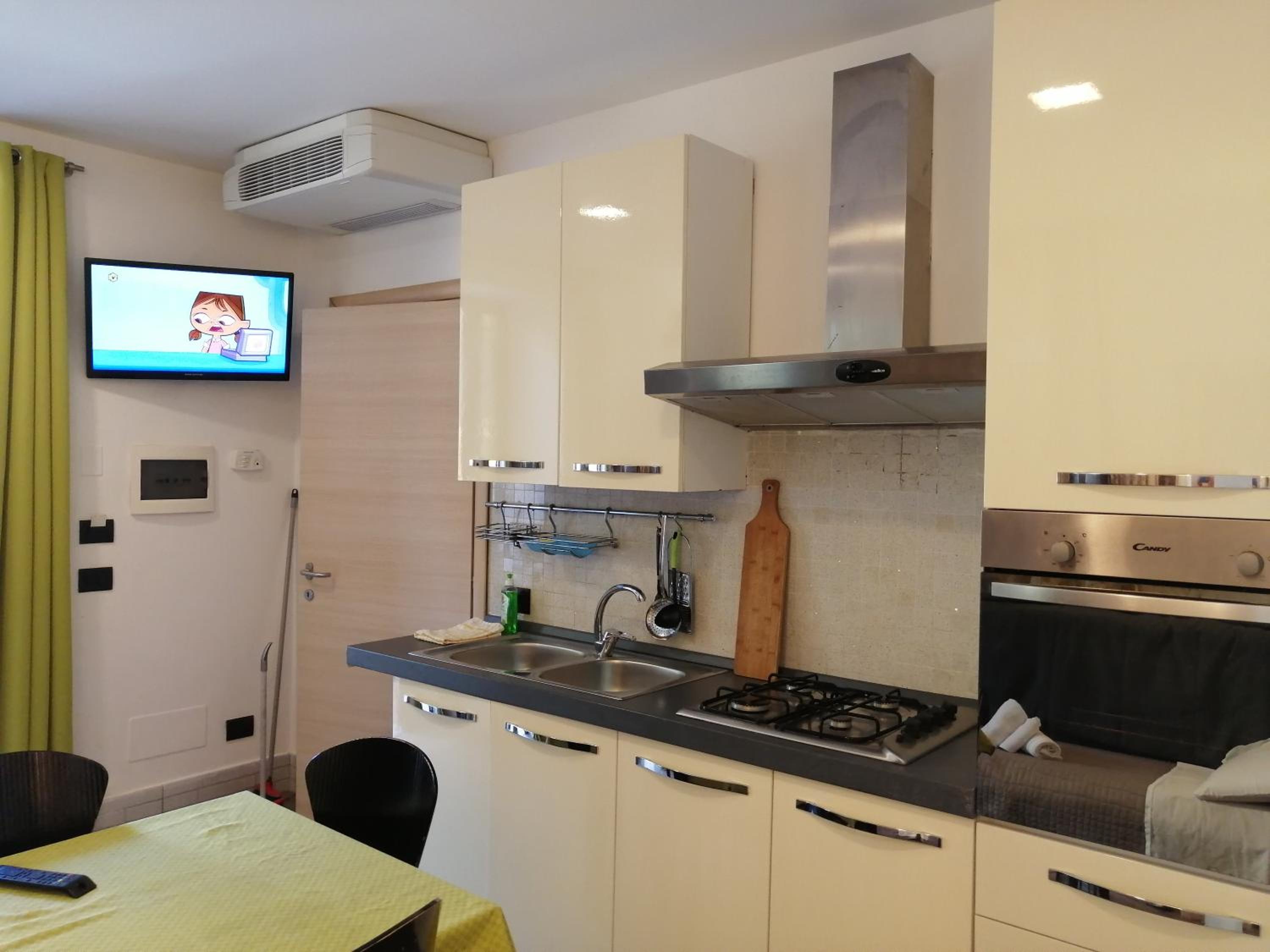 Il bilocale è comodo per 4 persone. È ben arredato e dotato del necessario per cucinare. Molto vicino c'è un centro commerciale e nel caso è molto vicino all' ospedale. C' è un' area verde molto estesa dove poter passeggiare.