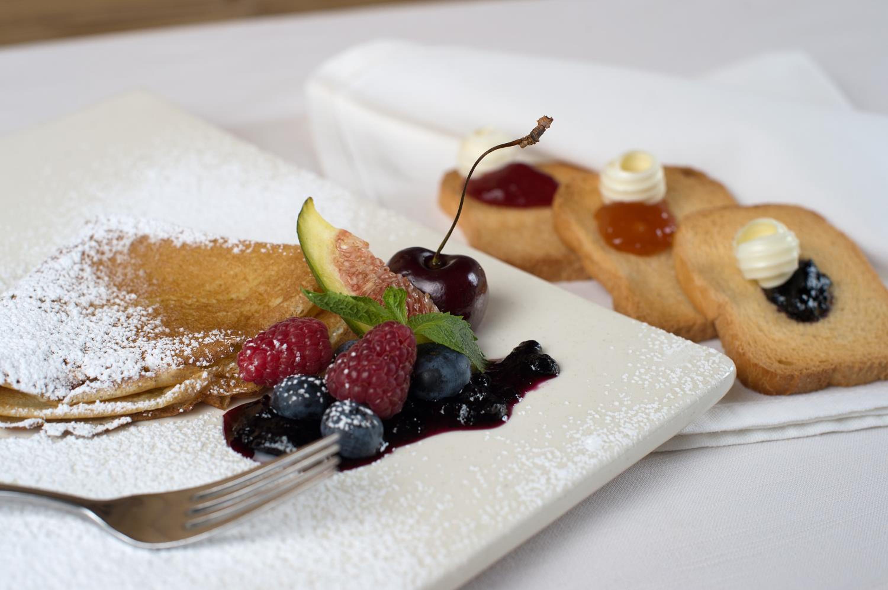 La Colazione era ben curata, torte fresche e ottima pasticceria. La posizione è perfetta xche comunica con le piste.