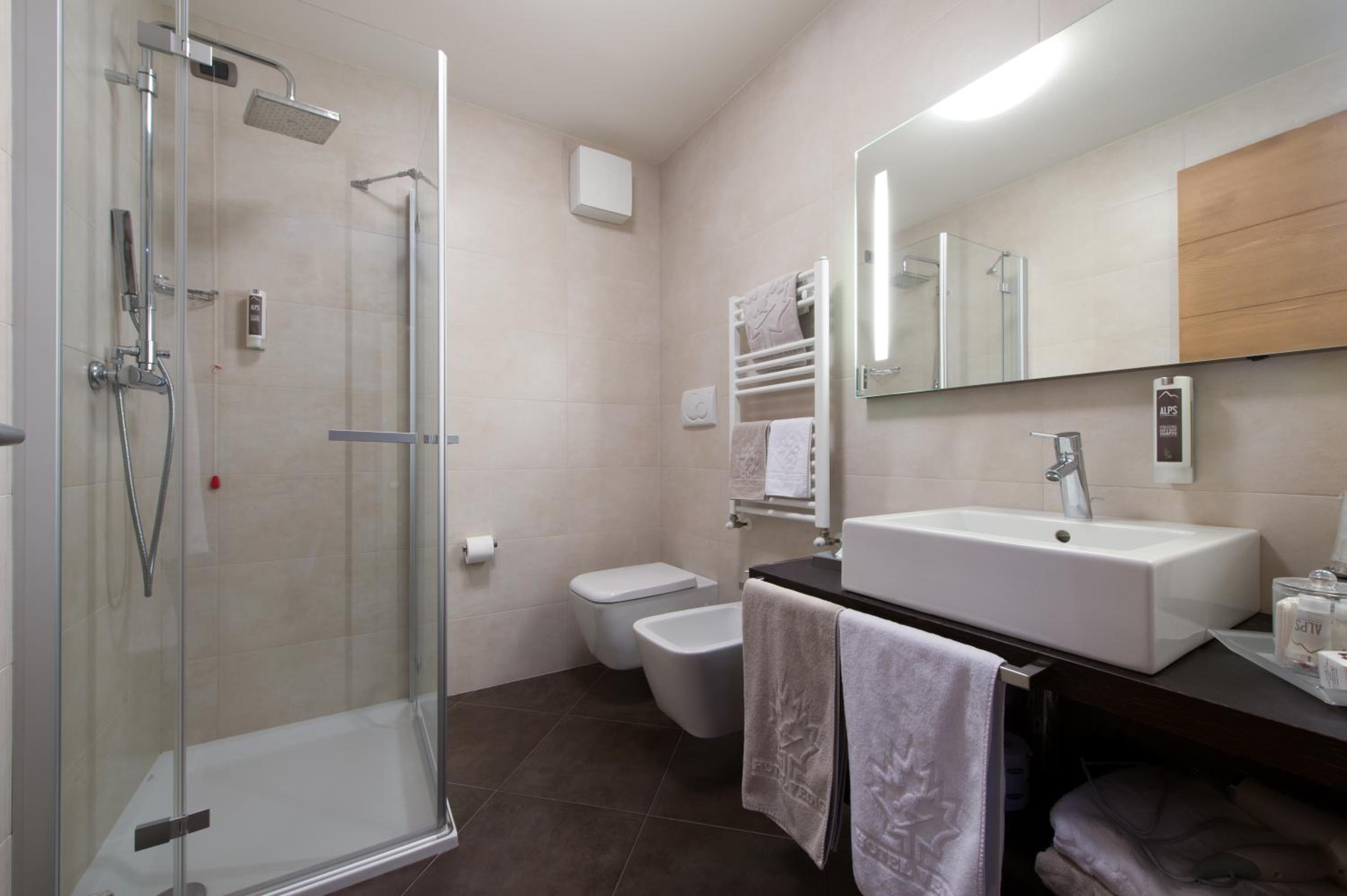 Modern Alpine Rooms with Balconies: Experience the charm of modern Alpine rooms with Wi-Fi, LCD satellite TV, and balconies overlooking the stunning Ortles-Cevedale peaks.