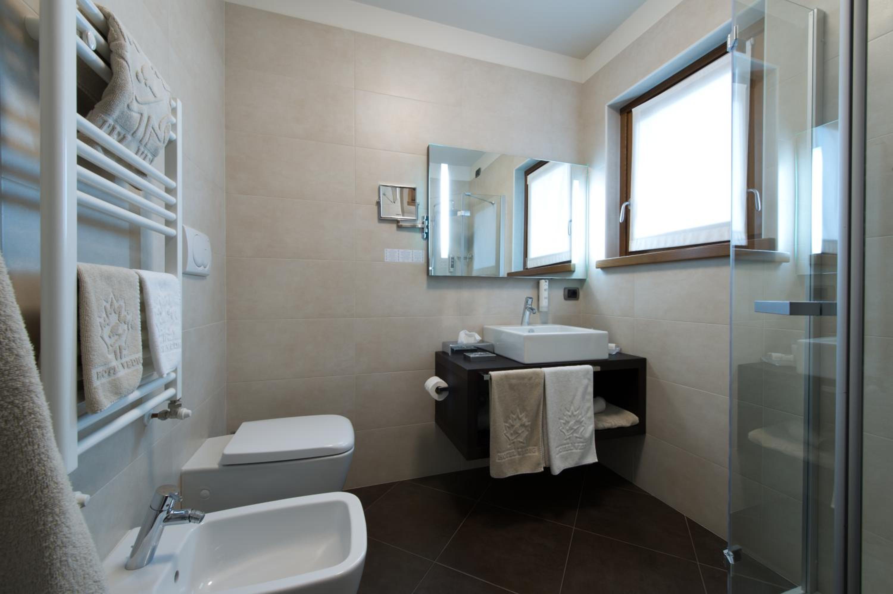 Lovely family run hotel. Everyone happy to help. Great location by the slopes - ski in and ski out. Restaurant food delicious. Fantastic breakfast. Parking right outside the door. Partner very happy as Rugby was on in the bar. Room a great size with a sofa and a small balcony. You can easily walk down to Santa Caterina for dinner or there is an excellent deli and a cosy bar. We had a great time here and would return.
