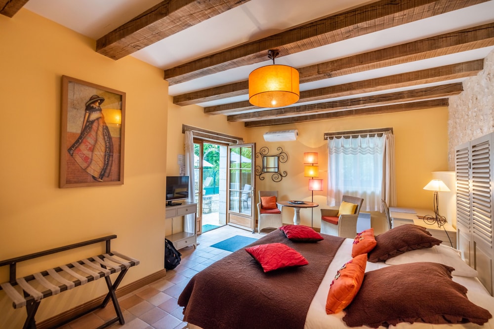 What a gem of a hotel! We loved everything about this water mill turned into a charming country hotel with a gourmet restaurant . The owners treated us like family and went out of their way to make us feel comfortable, from adding items to the breakfast and dinner menu , making recommendations on places to visit, keeping our luggage while we toured after we checked out and we were even given a goodbye gift!Most of the staff spoke English very well and were extremely encouraging and patient with my attempts to practice French. The rooms and bathrooms were spacious, well appointed and so prettily decorated. We had a balcony overlooking the turning mill wheel and flowers. It was a peaceful spot to relax read and sip on tea or wine.. Do not miss a chance to dine at the restaurant the food was exquisite and far surpassed some of the Michelin star restaurants we have dined in. Again the little touches of 2 plates of amuse bouches before the meal and a cleansing sorbet between the appetizer and entree and petit fours after dessert demonstrated the chef’s passion for the art of cuisine. The breakfast on the sunny terrace overlooking the gardens included crepes, yoghurts, fruit, pastries and a local delicacy each morning. They were happy to make eggs also! The pool was welcome after a long hot day touring around and if you felt energetic one could walk into town . The only sad thing was that we could not stay longer- but we know we will be drawn back to this one of a kind hotel!