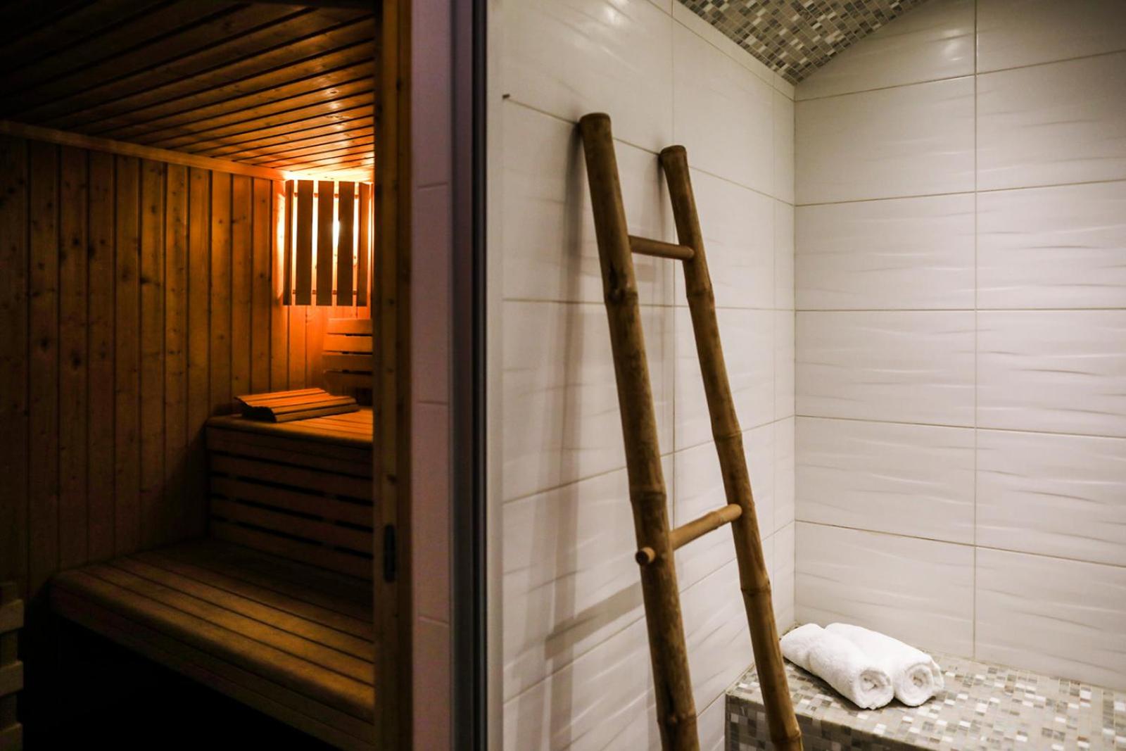 Soothing Wellness Amenities: Relax in the sauna, hammam, heated outdoor pool, and hot tub.
