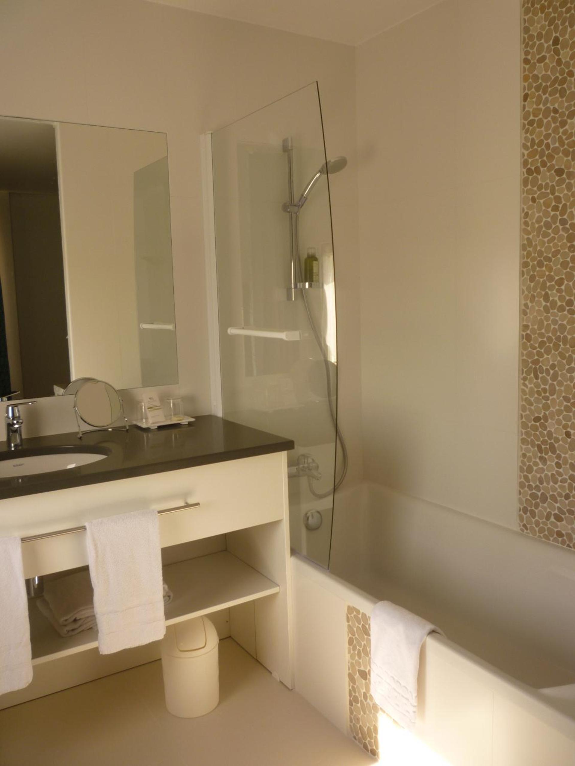 Le domaine vaste, arboré et très agréable offrant calme et détente . L équipe accueillante et efficace . Le petit déjeuner excellent . Les équipements proposés ( hammam,sauna,piscine)