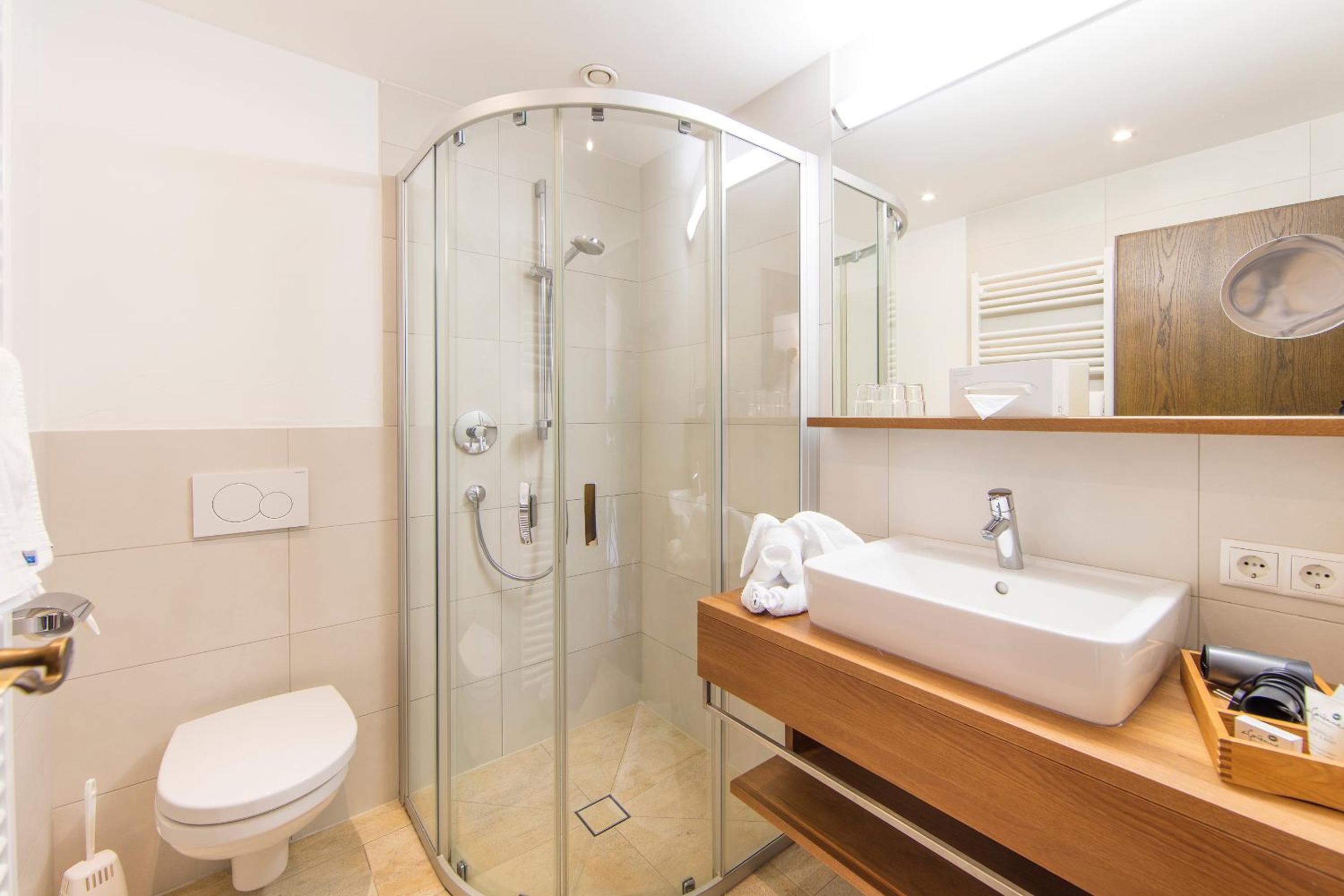 Der berühmte, größte Tiroler Wasserfall ist in nur 10 Minuten zu Fuß erreichbar – absolut sehenswert! „Die Sauna ist im Preis inbegriffen, ebenso das große Schwimmbecken. Ein besonderes Highlight: Am Mittwoch stellt der Chef persönlich seinen Weinkeller vor – inklusive Weinprobe und feinen Wurst- und Käsespezialitäten. Ebenfalls am Mittwoch kann man am Wasserfall ein beeindruckendes Lichtspiel erleben.“