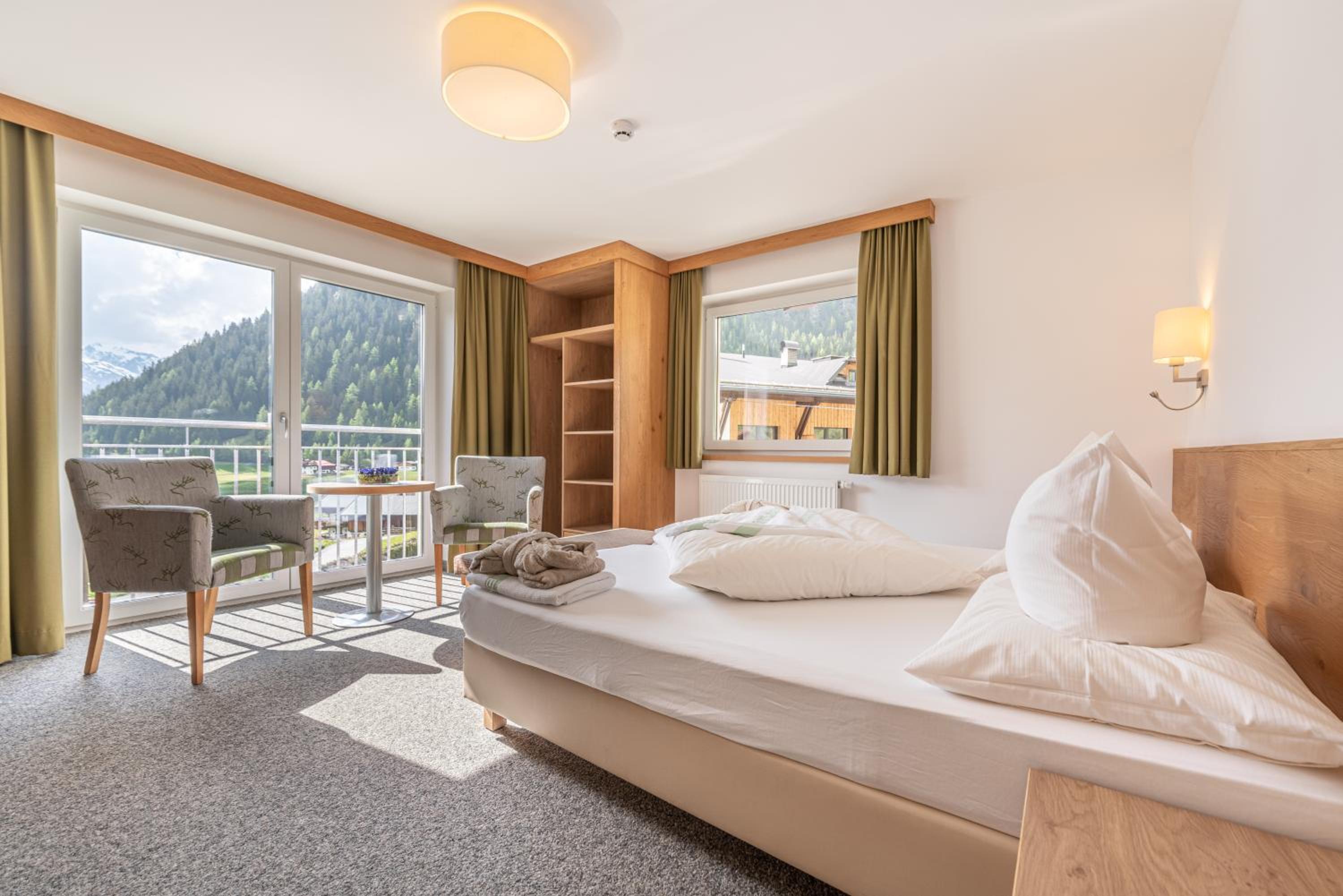 Hotel Falknerhof, nestled in the Ötz Valley, offers stunning views and cozy rooms made of local wood. Enjoy the balcony in most rooms overlooking the majestic mountains.