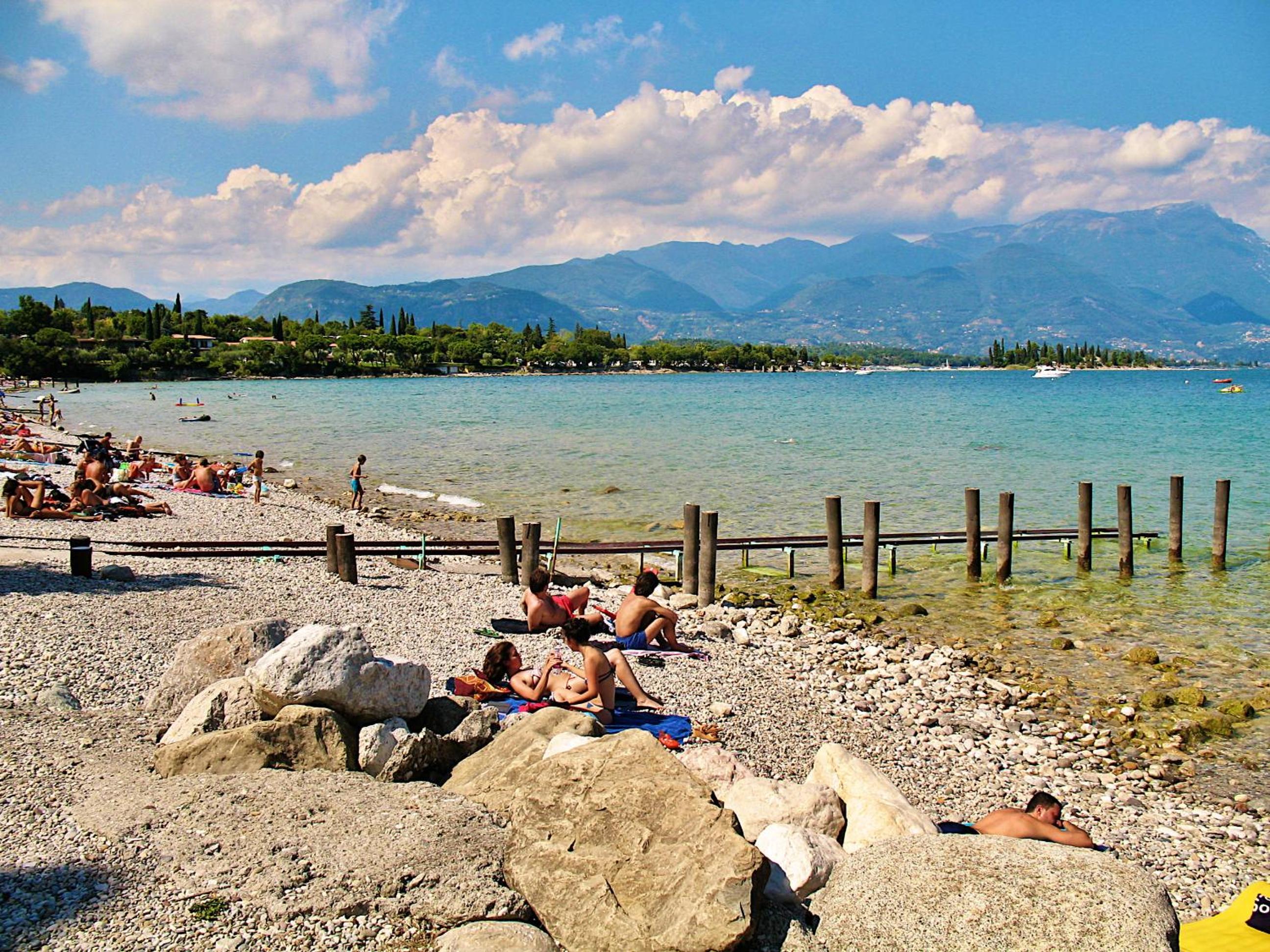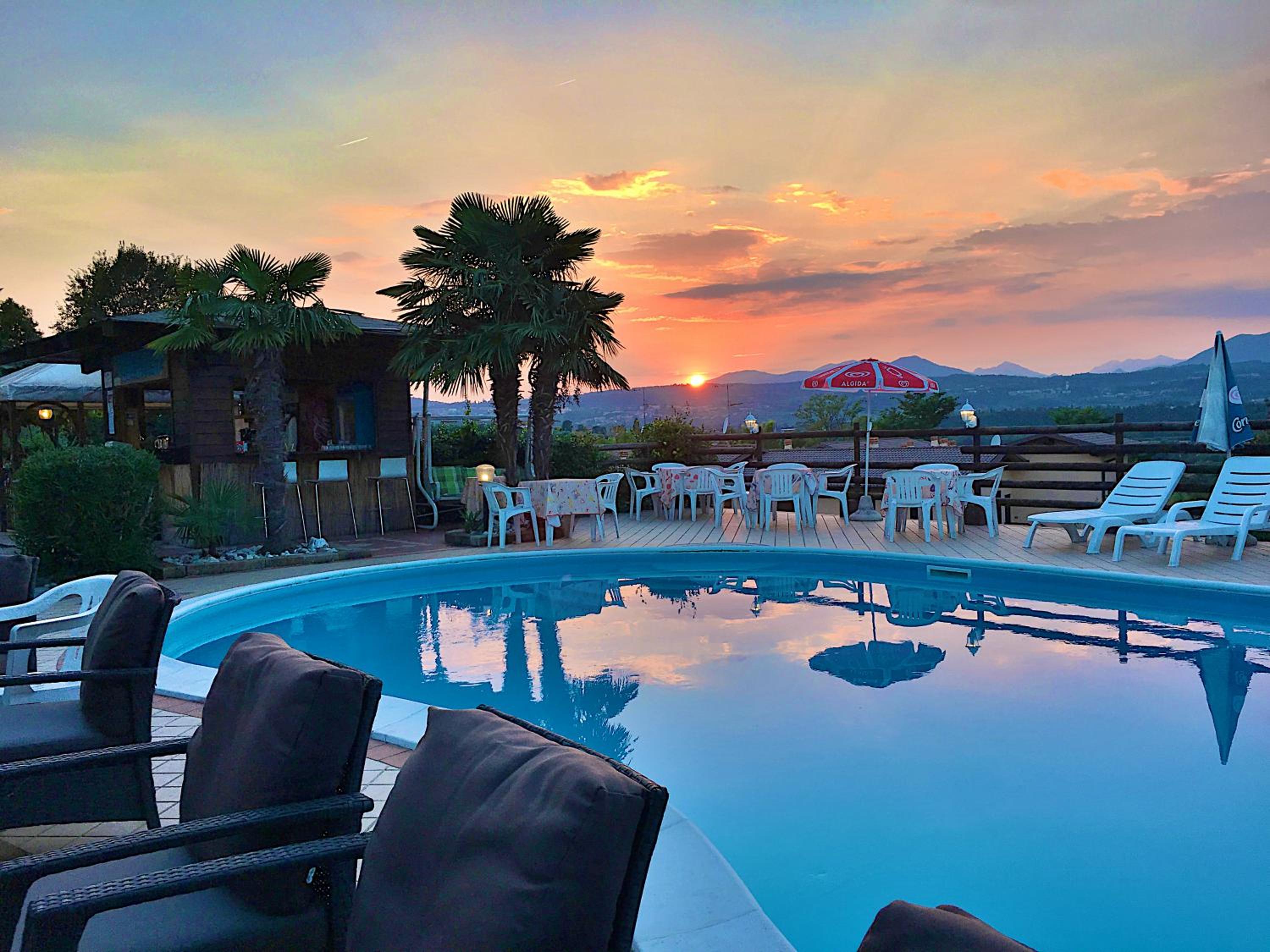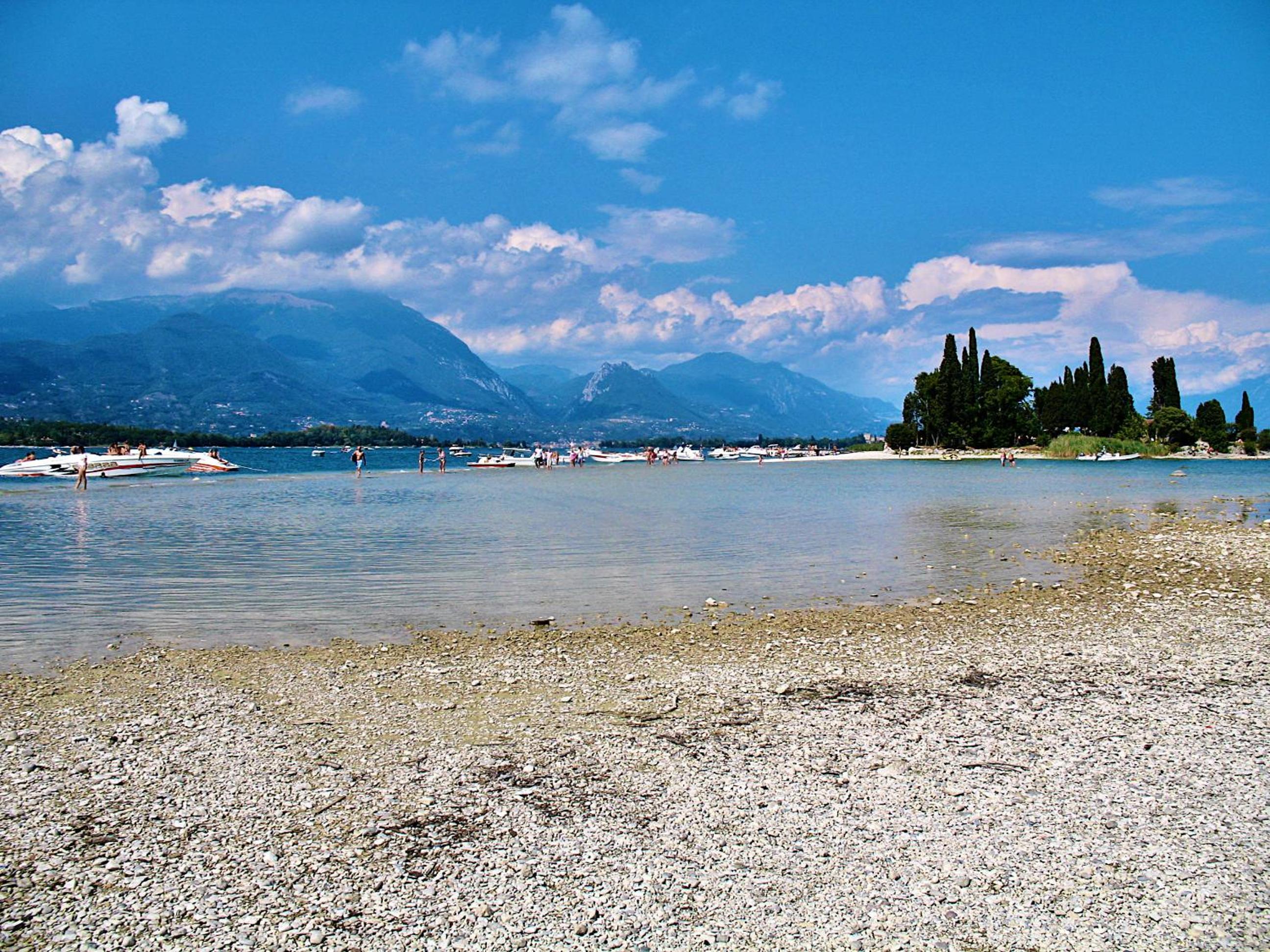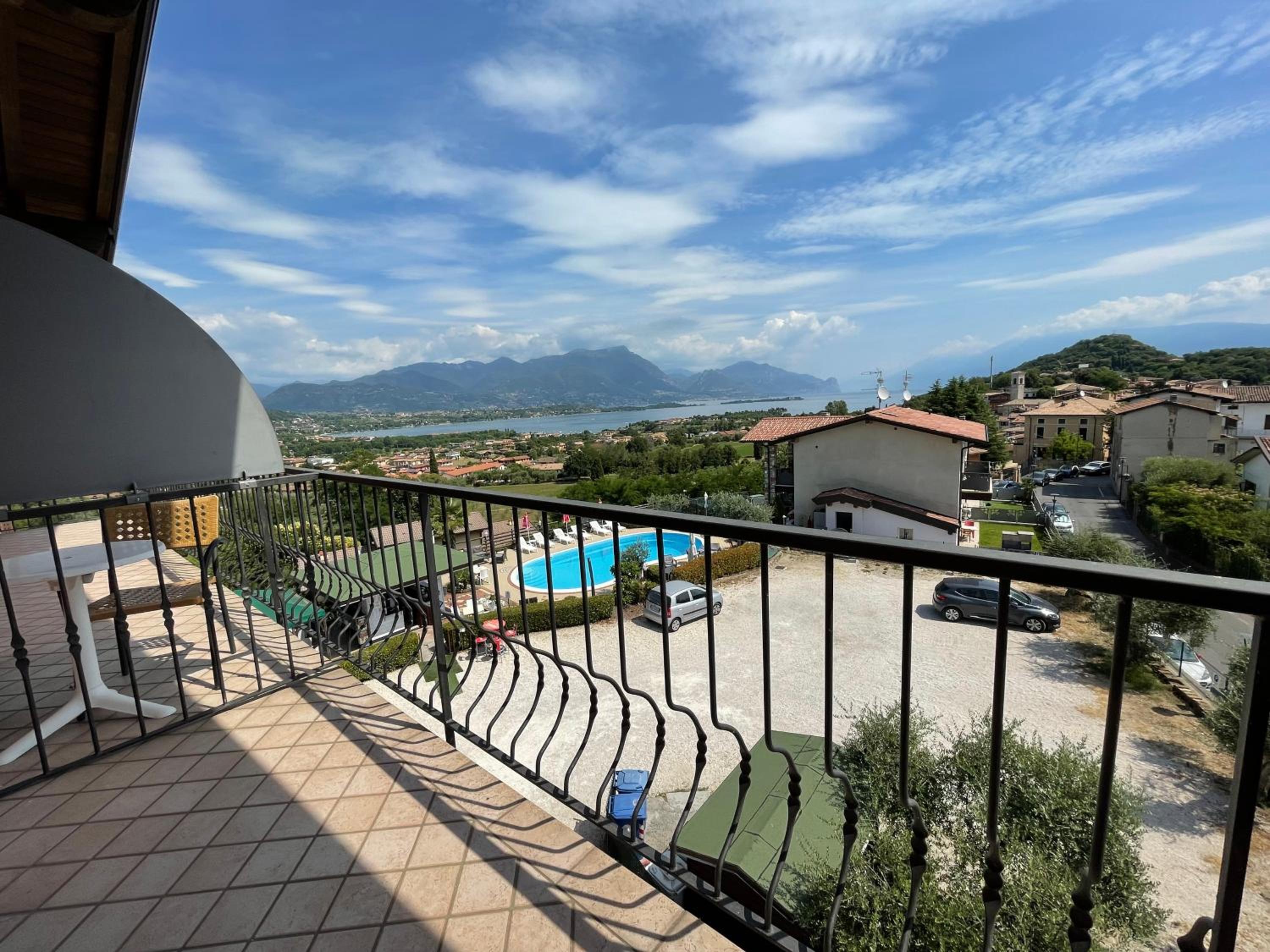 schöner Blick vom Poolbereich auf den Gardasee, sehr günstige Lage zu Gaststätten und Einkauf