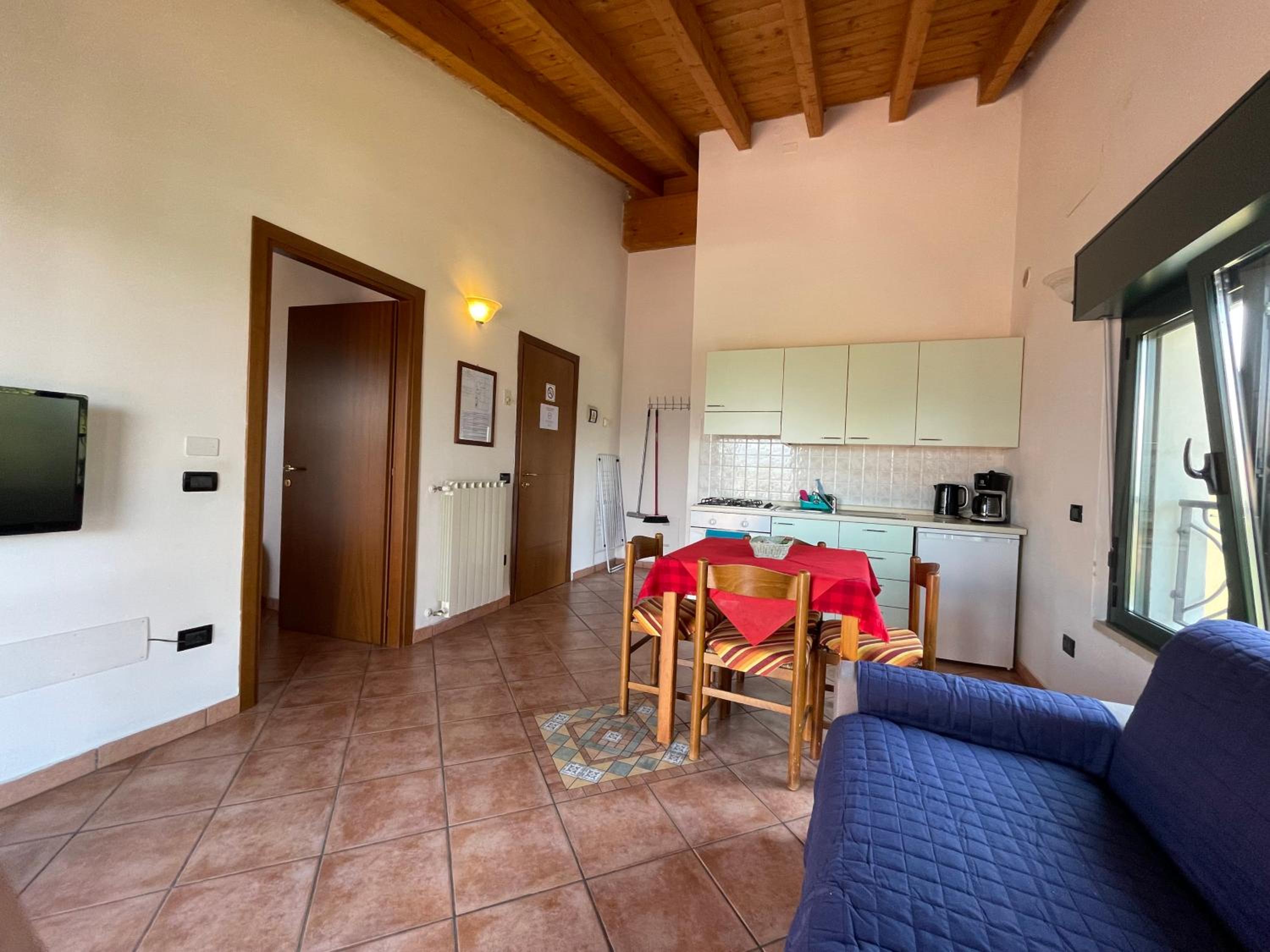 The spacious apartments at Bellavista feature balconies or terraces with stunning lake views. Each unit is equipped with a fully stocked kitchen and modern amenities, including a 32" LCD TV with satellite channels and USB/HDMI socket for entertainment.
