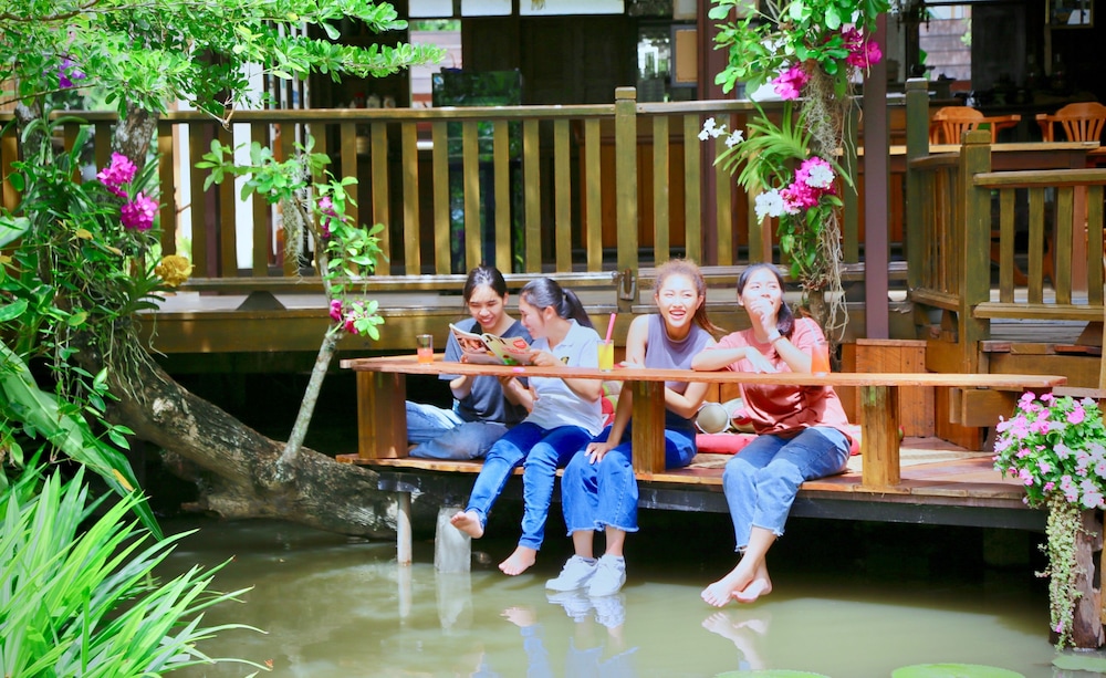Relaxing atmosphere in nature with excellent Thai hospitality. It was an oasis where I could rest comfortably in a very clean room (actually like a Thai house of my own with patio and back deck, a large bathroom). Their restaurant is by their small pond in which you can admire watching beautiful fish, big and small, swimming around; an added beauty to the already well cared nature. The pool is small but you feel like you are in your own villa’s pool and it is crystal clear. My special thanks to the owner Miss Nat and the lovely staff who are doing a wonderful job making your stay comfortable; every detail is taken care of. Food is delicious, you can also pre-order whatever you would like to eat. I stayed 5 nights and I will miss here; definitely recommended for a peaceful cozy holiday with a traditional elegant Thai touch.