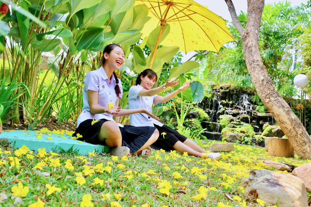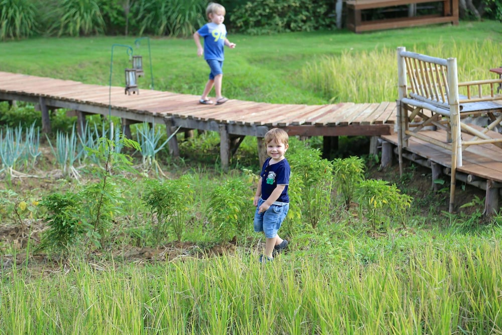 If I could give this truly lovely little boutique resort 10 stars I would - we really couldn’t have chose a better place to stay with our 4.5 year old twins. Nat, the owner is so helpful & friendly & so are all staff, who all do their jobs fantastically. There is a genuine feeling of care & teamwork all round. We stayed in the 2 bedroom family villa which is actually 2 separated en-suite double rooms, with a shared open space/hall/reception area between then, opening on to a really great size balcony with comfy furniture, overlooking the pool. The grounds & gardens are beautiful & so lovingly designed & maintained. Butterflies & dragonflies flutter around the gorgeous plants & the sound of water features around the central pond, complete with fish we helped to feed, is so relaxing! It really is a heavenly little Oasis that feels a world away from Chiang Mai city but only 10 mins via grab or bolt, so it’s very easy & cheap to get around. There’s street food, laundry & a 7eleven within walking distance, but we ate at the hotel & had laundry sorted by the housekeeping team too. Bedding & pillows are premium & soft. Firm mattresses, which we are ok with. Lovely slippers & robes too. The food was all delicious! We stayed 8 nights & there was just about enough variety on the menu for us. We loved breakfast in the laid back restaurant, although simple choices of different egg dishes, waffles, cereals & pancakes it was always fab, with a huge platter of fresh fruits & great coffee, and the setting is lovely by the water. Always the tastiest watermelon & must mention the Tom Kha at lunch/dinner as it is so good! The pools & playground are both perfect for young families. One of the most important things for us was how well all the interns looked after our twins. We were able to enjoy our meals, sit and finish when they wanted to run off & play, the staff would jump in & look after them. Theres a little play corner in the restaurant & scooters and ride-on’s for the kids to use & it’s very safe for them to circuit around the pool and restaurant, under the watchful eye of the very kind and hugely appreciated staff. I can’t offer enough thanks and appreciation! If you have young children and are considering Chiang Mai this is absolutely the place to stay! Thanks to all at the resort for looking after us so well! If we come back to Chiang Mai in the future, we will certainly stay again :)