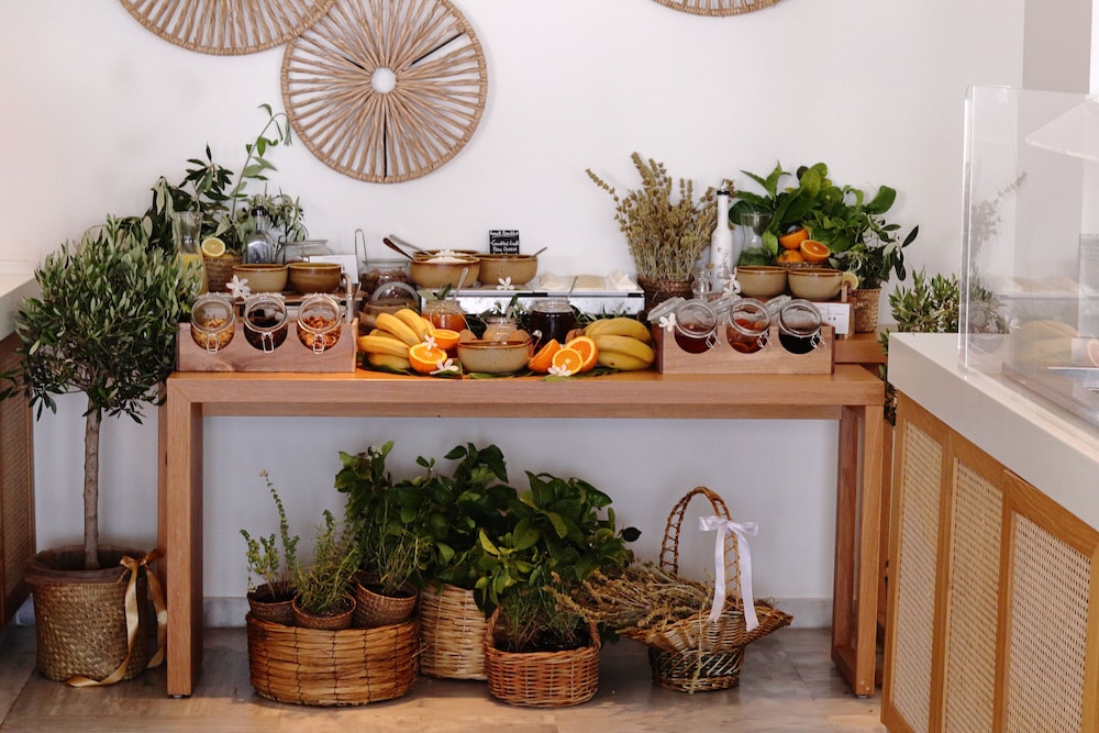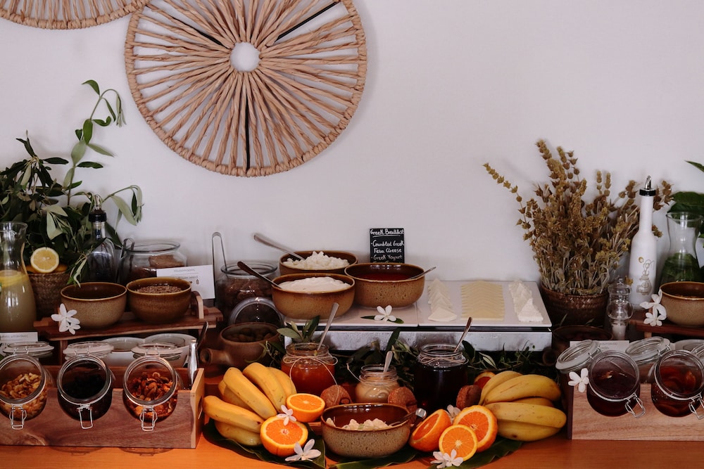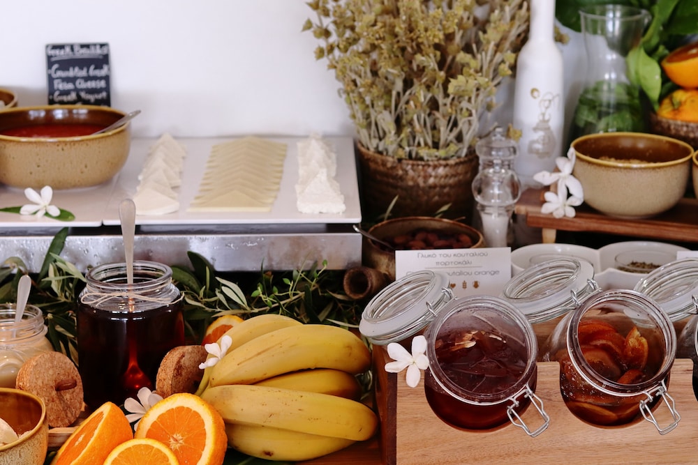 Die Lage ist auch sehr gut. Ein paar Meter zum Supermarkt und Autovermietungen und den ersten Tarvernen. Bis in den Ort geht man gemütlich 10 Minuten und hat dort ein paar Geschäfte, Apotheke, Bäcker, weitere Autovermietungen und viele wunderschöne am Meer gelegene Tavernen. Wir hatten deshalb nur Frühstück gebucht und es war aufgrund des Angebotes an Lokalen auch so wie wir uns das vorgestellt hatten. Das Frühstück ist ok, man kann drinnen oder draußen sitzen.