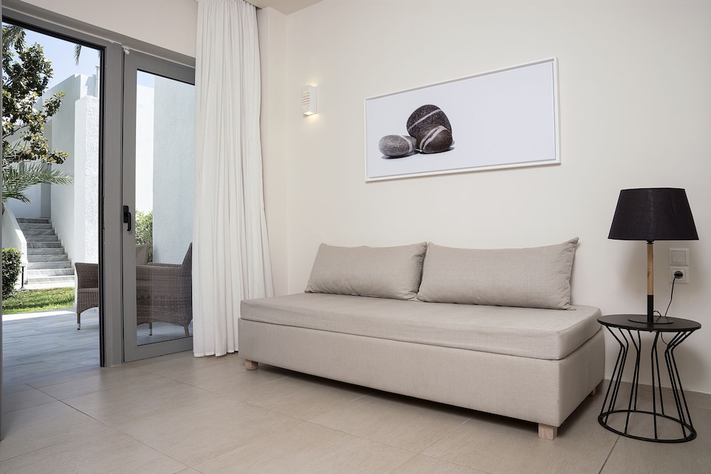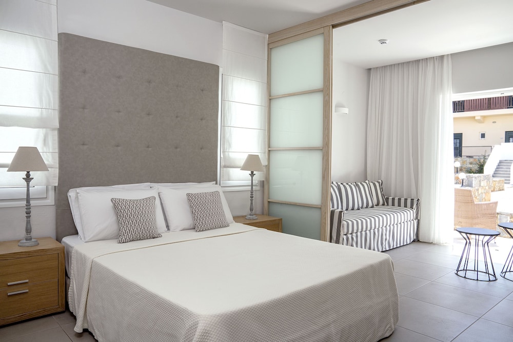 Très bel établissement, face à la mer. Plage insignifiante. Attention il y a des marches un peu partout . Petit déjeuner et diner excellents . Accueil sympathique . J'y reviendrai si je retourne en Crête. Prévoir une voiture de location pour se deplacer