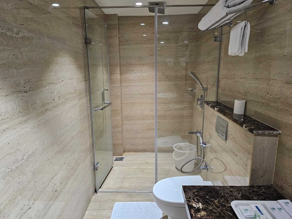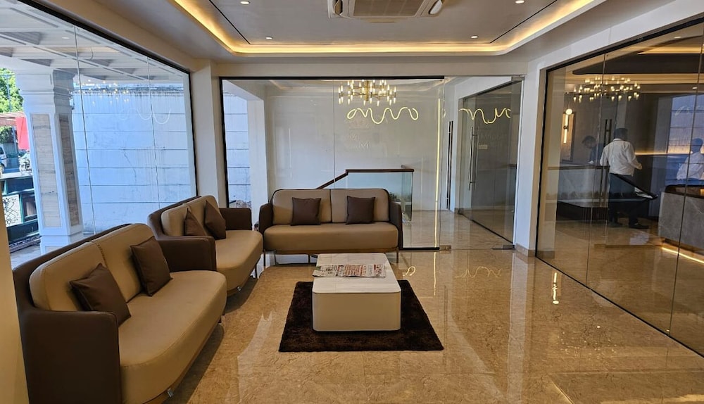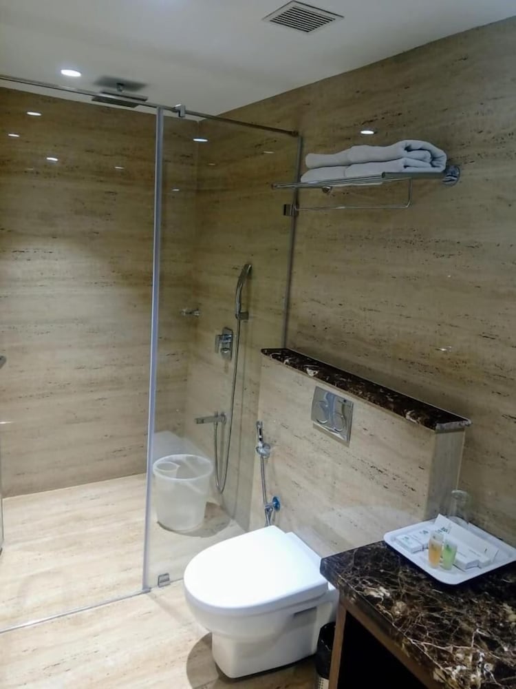 Close to airport which made it noisy. I took earplugs so not a problem. Reception staff were excellent. Spoilt by the attitude of the porter, who carried 1 backpack to our When we said we had no change but would tip him the next day. He told us he would get change for us from our 500rupee as he finished work at 6am. It was after midnight we had just come off a flight. Without thinking we let him change the money. He brought back no small notes. Then went on to say we should give him 100 rupee.