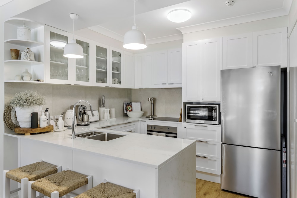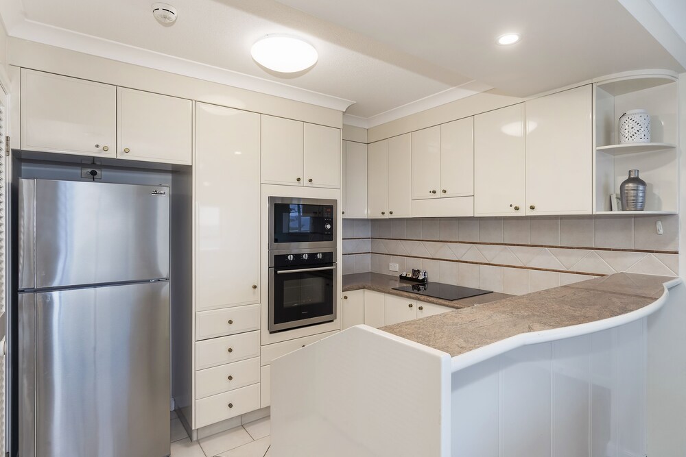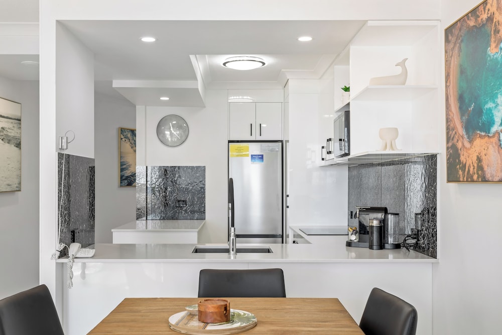 A last-minute booking into this property turned out to be perfect. Two bedroom apartment with balcony facing the esplanade and beach. Woke to the sounds of ocean waves. Lovely clean building and unit. Pool available and underground parking. Kitchen had everything we needed to make a lovely dinner after shopping the farmers market. Central location.