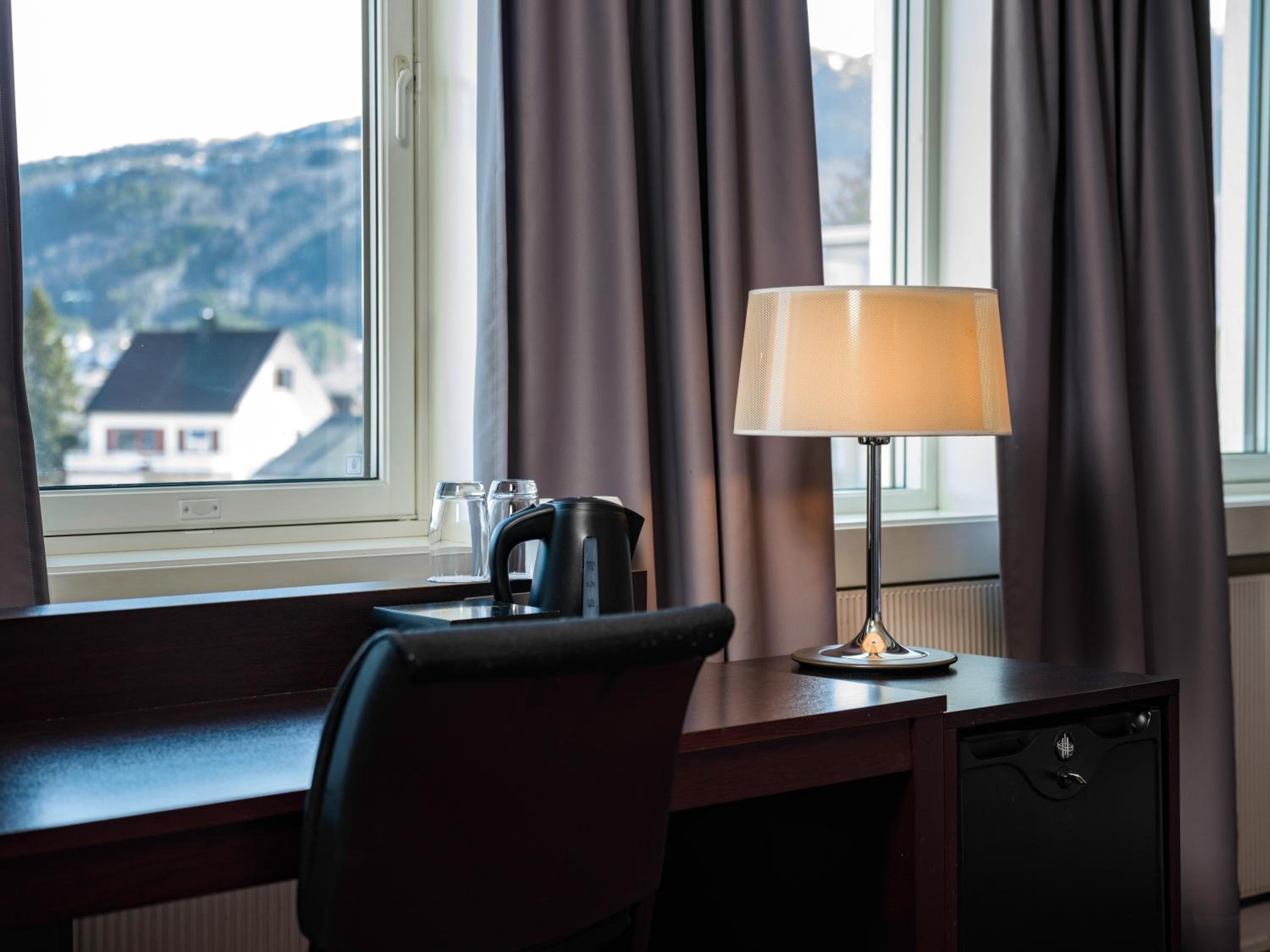 Stayed 2 nights in a deluxe twin room overlooking town and fjord. Very comfortable room and clean and friendly helpful staff. Good location.